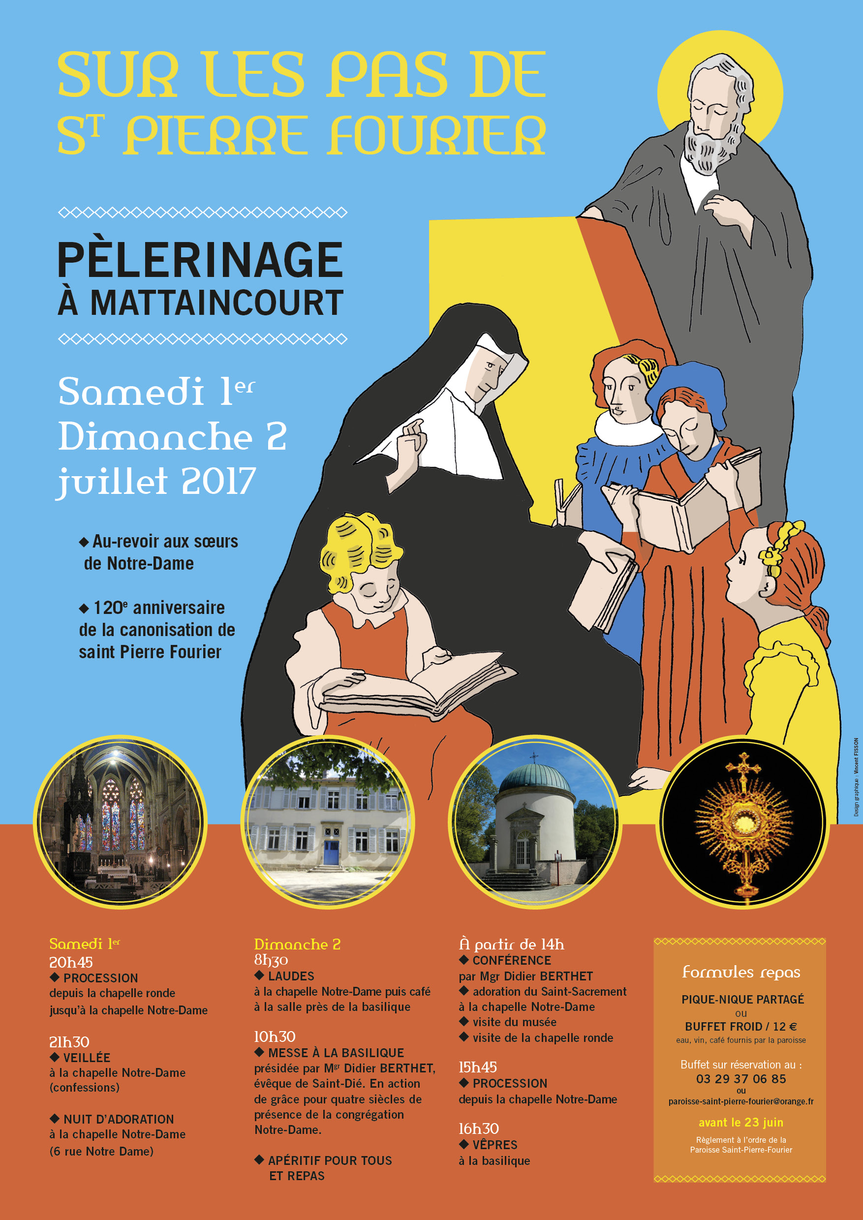 A l'occasion du 120e anniversaire de la canonisation de Saint-Pierre-Fourier et du départ des soeurs de Notre-Dame, la paroisse Saint-Pierre Fourier organise un pèlerinage à Mattaincourt :