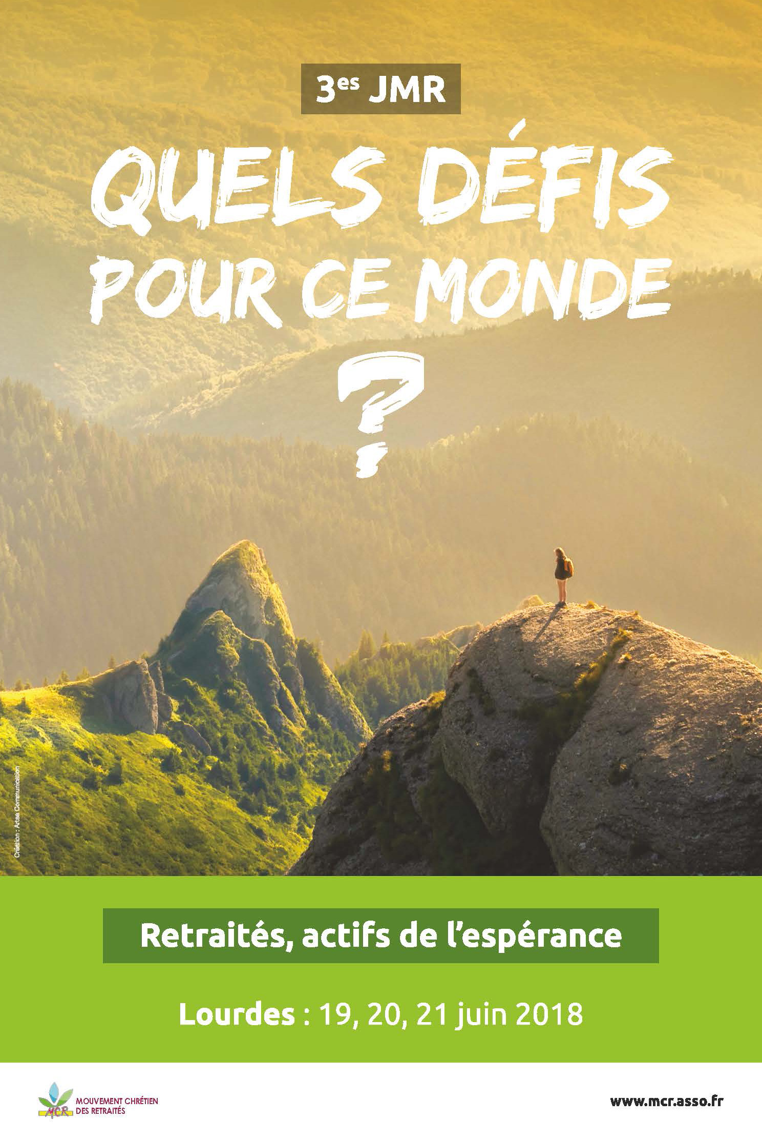 Les 19, 20 et 21 juin 2018, le MCR (Mouvement Chrétien des Retraités), organise leurs 3èmes Journées Mondiale de la Retraite. Cette manifestation est ouverte à toutes personnes intéressées par les thématiques traitées, personnes adhérentes ou non au MCR.