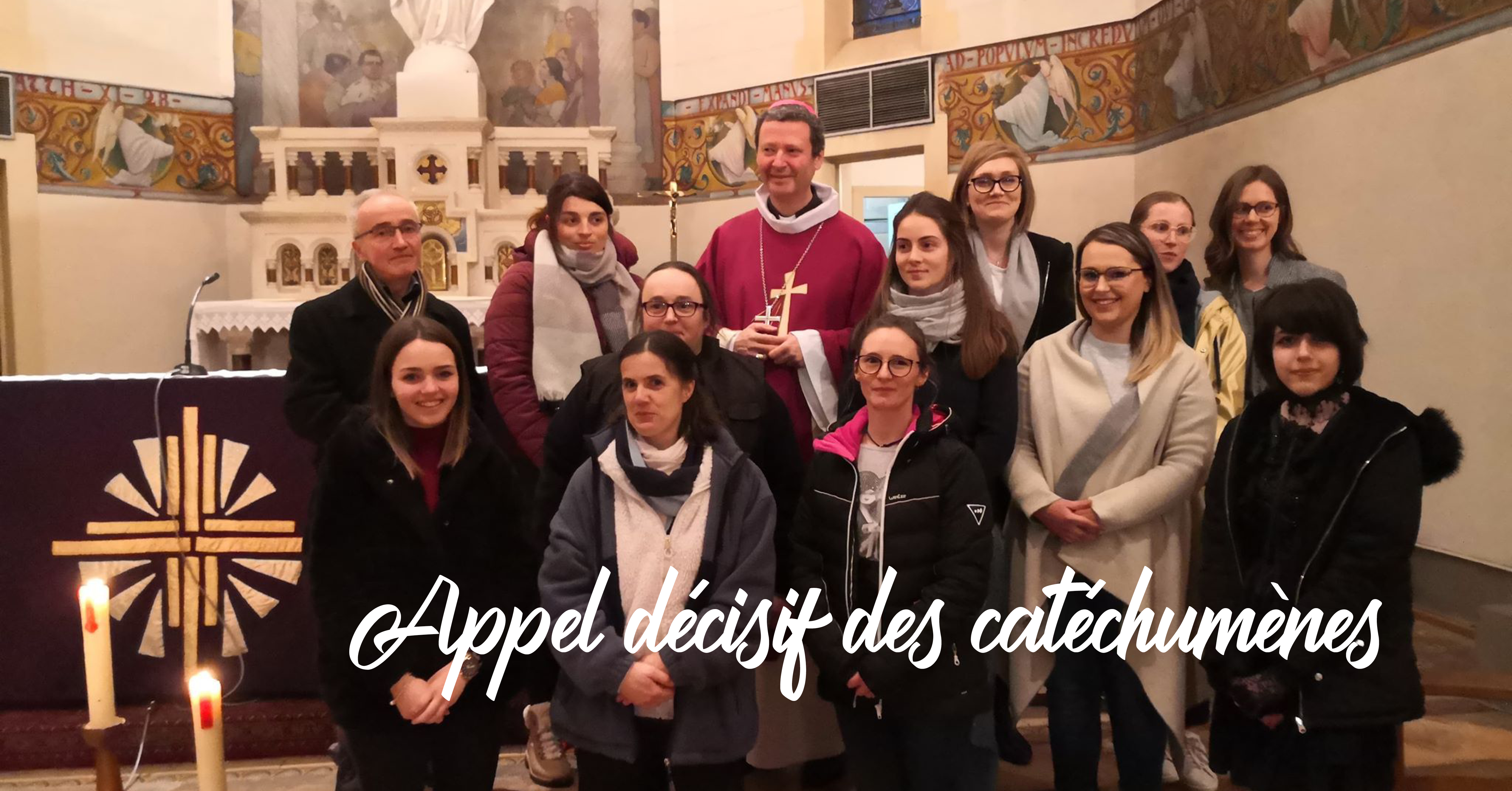 Charlène, Jacques-Ivan, Caroline, Amélie, Dorine, Coralie, Clémence, Lucie, Ève-Laure, Laure, Ambre, Maï et Indira ont été « Appelés » par notre évêque Monseigneur BERTHET, samedi 29 février à l’église Saint Antoine à Épinal au cours de la célébration de l’appel décisif. Appel décisif qui marque la fin du temps du catéchuménat pour ces 13 adultes, qui seront appelés « Élus » jusqu’à la Veillée Pascale. Lors de ce temps pascal, ils recevront les 3 sacrements de l’initiation chrétienne que sont : le Baptême, la Confirmation et l’Eucharistie.