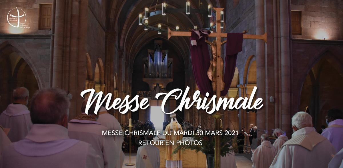 La messe chrismale est célébrée dans le diocèse normalement au cours de la Semaine Sainte. Dans notre diocèse, elle est généralement célébrée le mardi de la Semaine Sainte. Durant cette célébration, l’évêque bénit les autres huiles saintes (l'Huile des catéchumènes et l'Huile des malades) et consacre le Saint Chrême. Cette huile servira dès les baptêmes de Pâques puis tout au long de l’année pour les sacrements du baptême, de la confirmation et de l’ordre.
