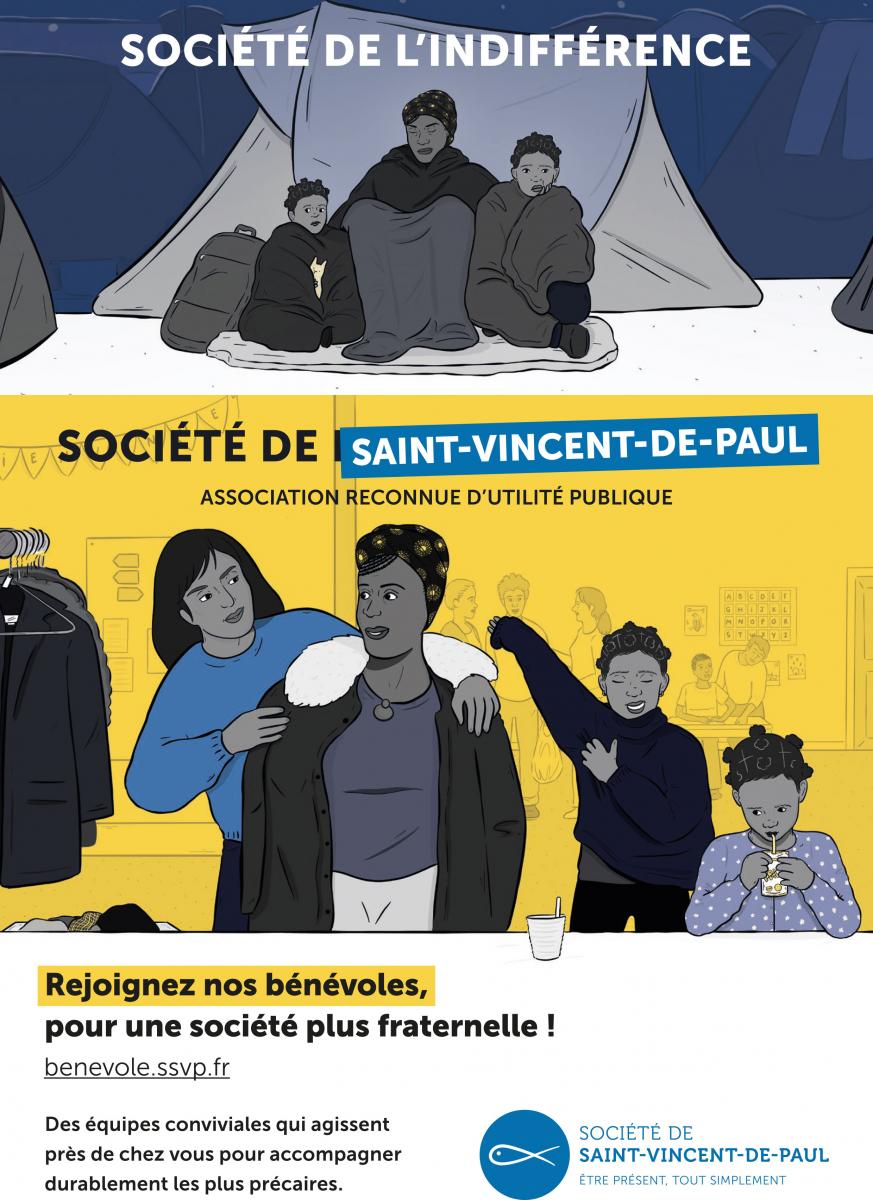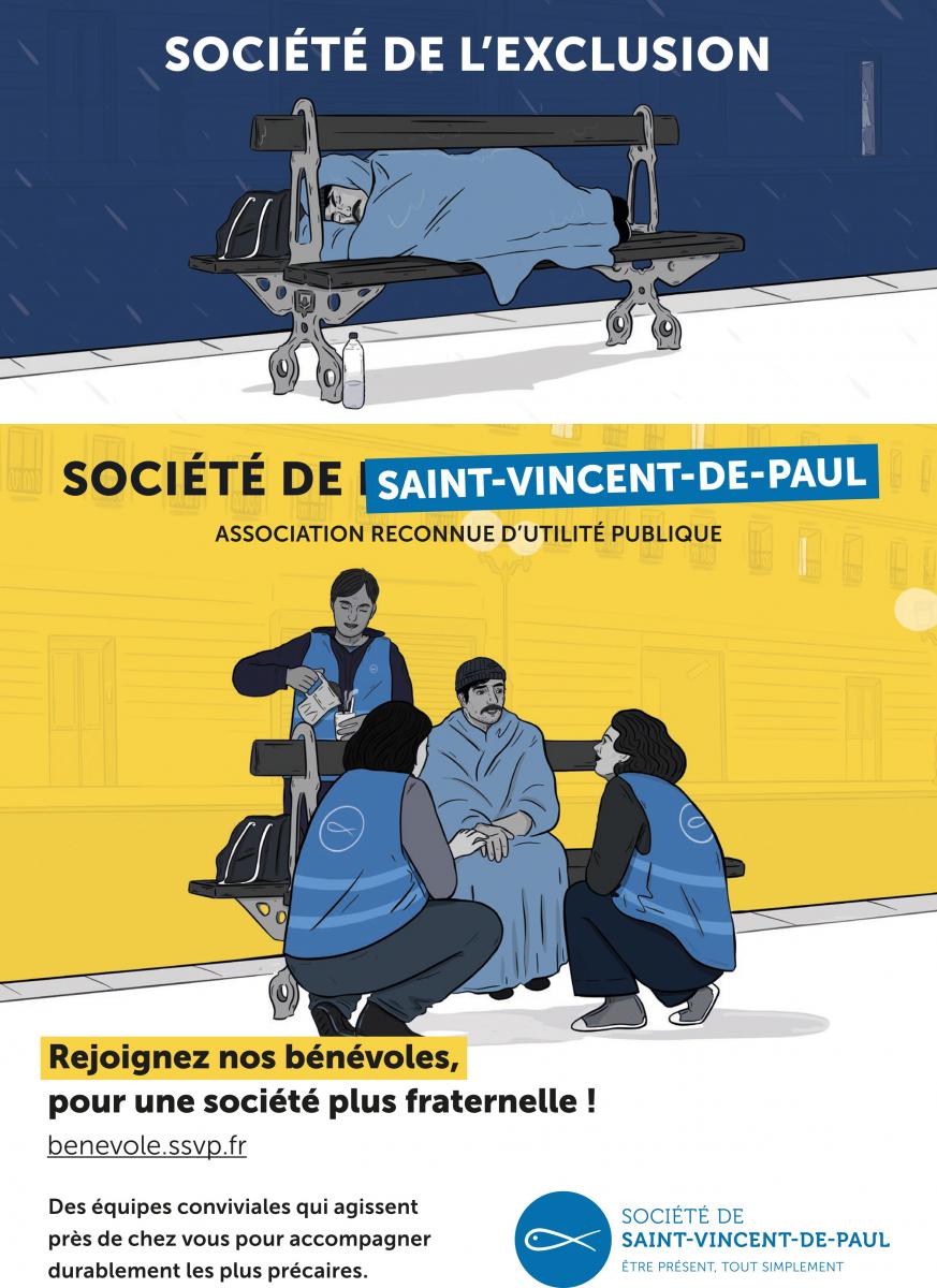 La Société de Saint-Vincent-de-Paul a mis en avant une série d’affiches qui traduit les actions phares de l’association telles que les visites à domicile ou les maraudes.