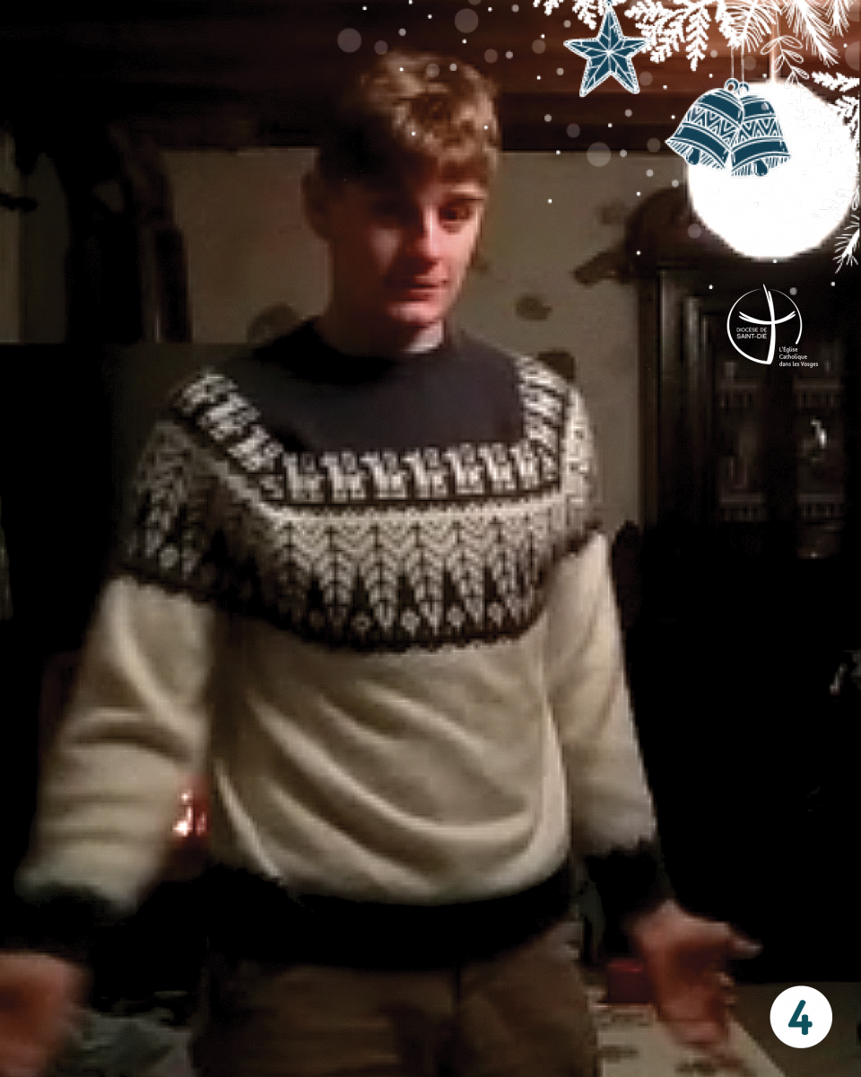 Bravo à la petite Jeanne qui gagne le concours du Pull de Noël avec le plus de votes & qui va pouvoir lire "Fratelli Tutti" dans quelques années avec l'aide de ses parents Joseph & Margot !