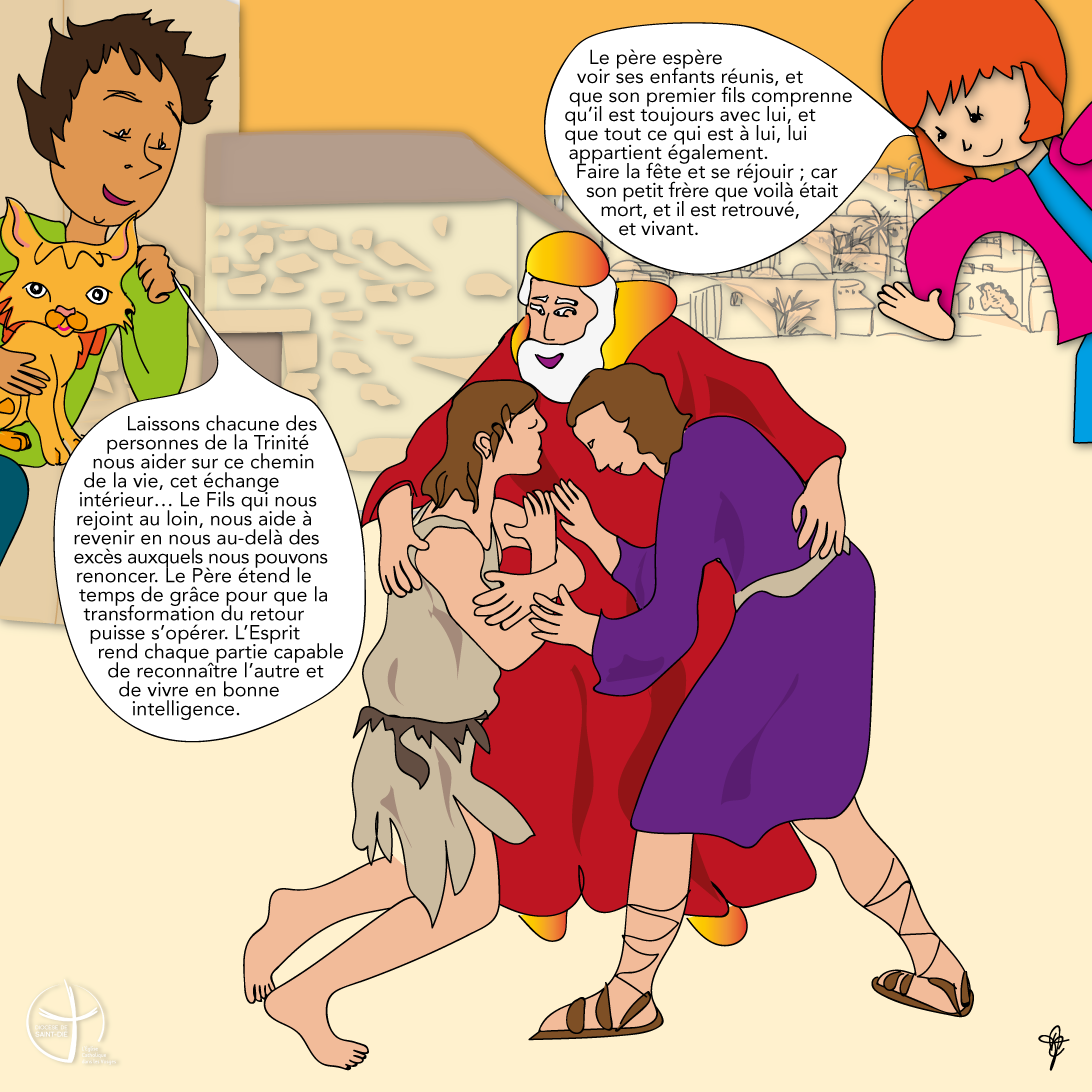 On dit la parabole du fils prodigue mais dans l’histoire il y a trois personnages. On pourrait dire aussi la parabole des 2 frères. À première vue le cadet veut vivre sa vie, être autonome, quoi de répréhensible ? Mais c’est aussi le noceur, le gars qui fait ripaille, celui qui n’attend même pas la mort de son père pour demander sa part d’héritage & qui s’en va au loin faire la bamboche et dilapider les biens donnés.