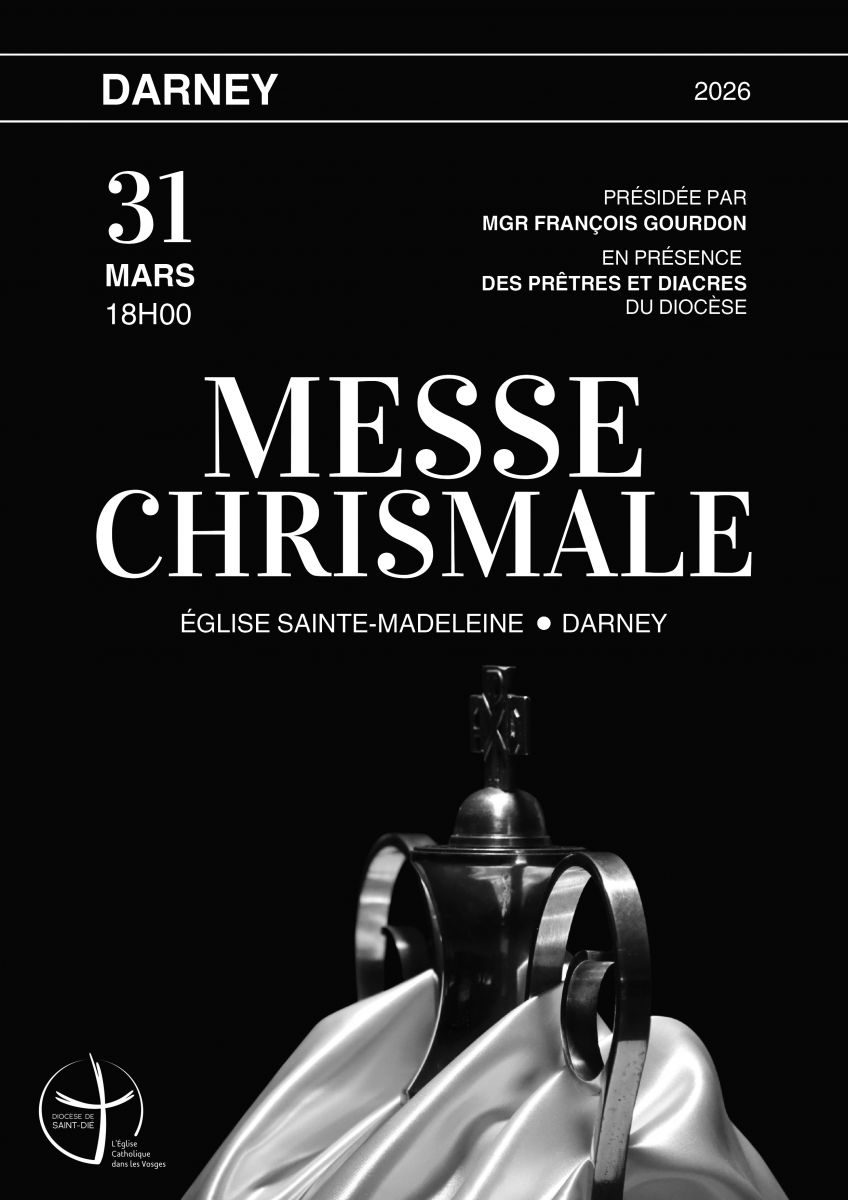 Elle sera célébrée en l'église Sainte-Madeleine de Darney le mardi 31 mars 2026. C’est une invitation à vivre ensemble un moment de foi, d’unité et d’espérance, à l’approche du Triduum pascal.