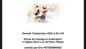 Samedi 3 Septembre 2022 à 20 h 00 Soirée de louange et d'adoration à l'église Saint Luc de Raon l'Etape