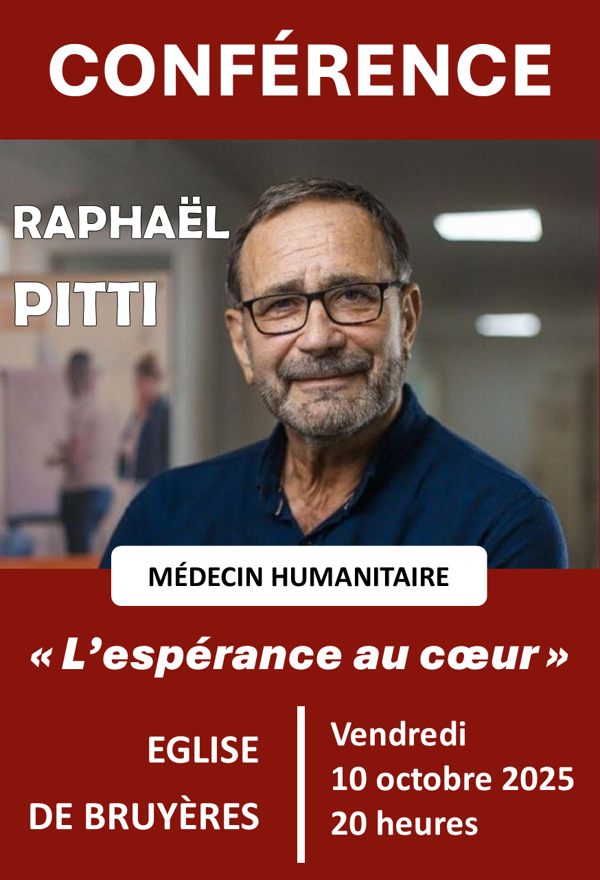 L’Espace missionnaire Rambervillers / Bruyères propose une conférence “L’Espérance au cœur” avec le Dr Raphaël Pitti le vendredi 10 octobre 2025 à 20h00, à l’église de Bruyères.