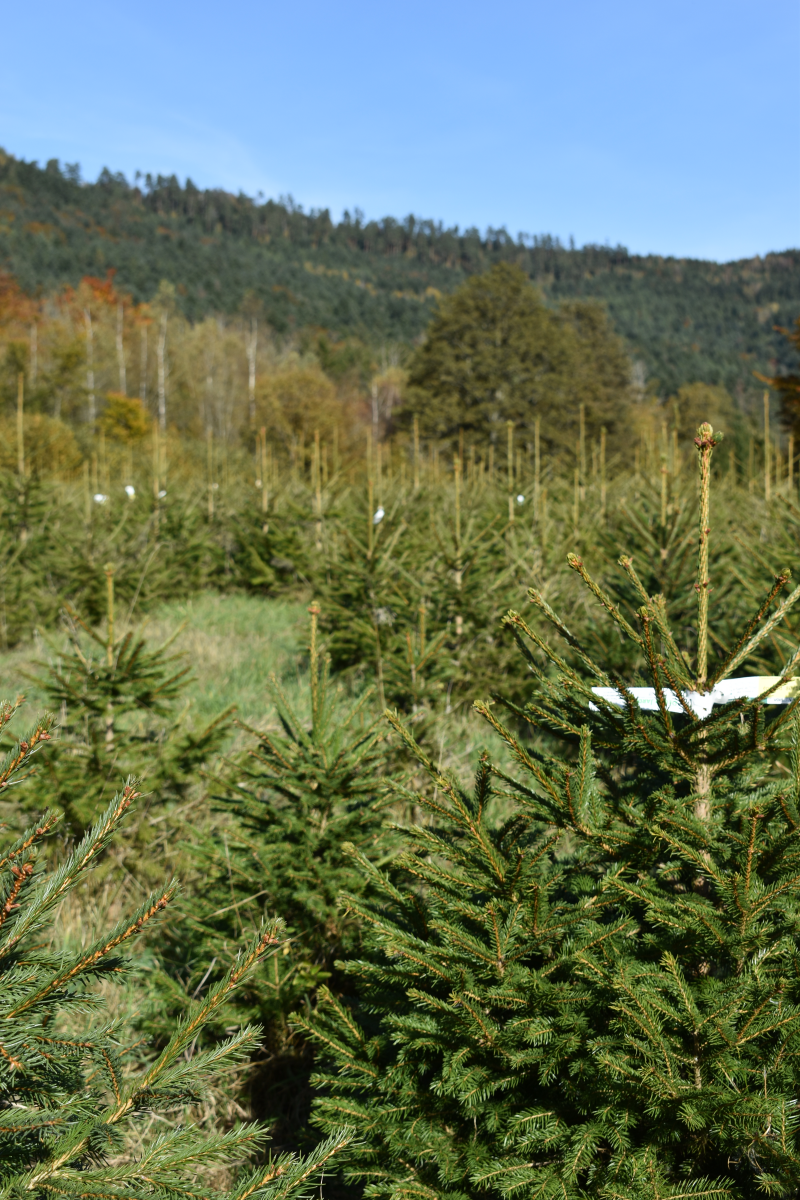 Depuis les années 2000, Laurent s’est lancé dans l’exploitation de sapins de Noël. L’agriculteur de Coinches est rejoint dans la coexploitation en 2011 par Fabien, son confrère de Sainte-Marguerite. Après sept ans de pousse, ils commercialisent leurs premiers sapins de Noël en 2018. Leurs sapins poussent sur 11 hectares, sur une vingtaine de parcelles à Saint-Dié et ses alentours. De quoi « ne pas mettre tous les œufs dans le même panier » en cas d’in- tempéries climatiques, telles que les gelées tardives en mai 2020 qui, après deux années de sécheresse, occasionnèrent une perte de plus de 50 % de la production. Les sapins ou épicéas proposés ne sont pas issus des forêts vosgiennes, c’est une culture spécifique et presque 90 % de la culture sont des Nord- mann (espèce arrivée en France à la fin des années 1990).
