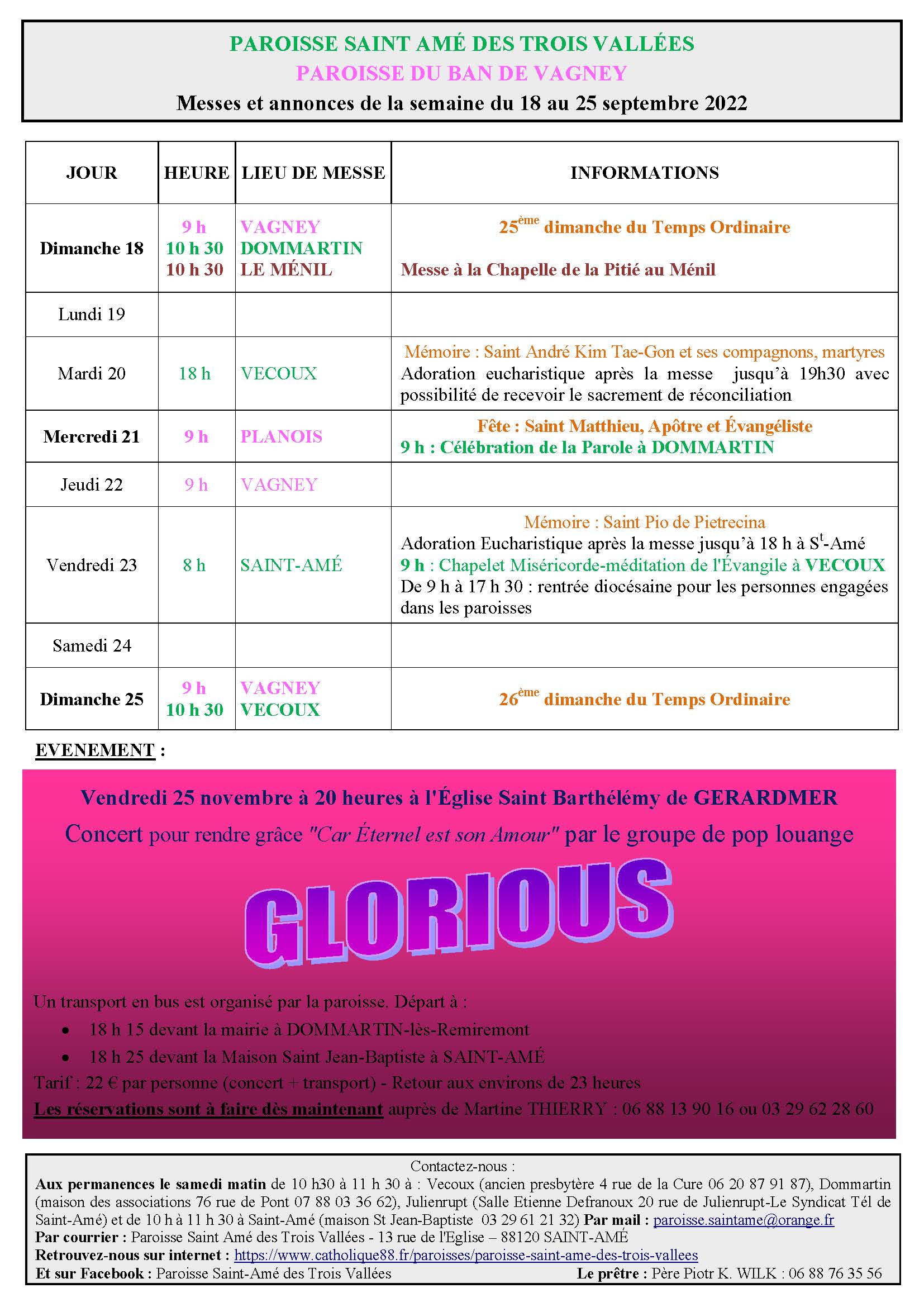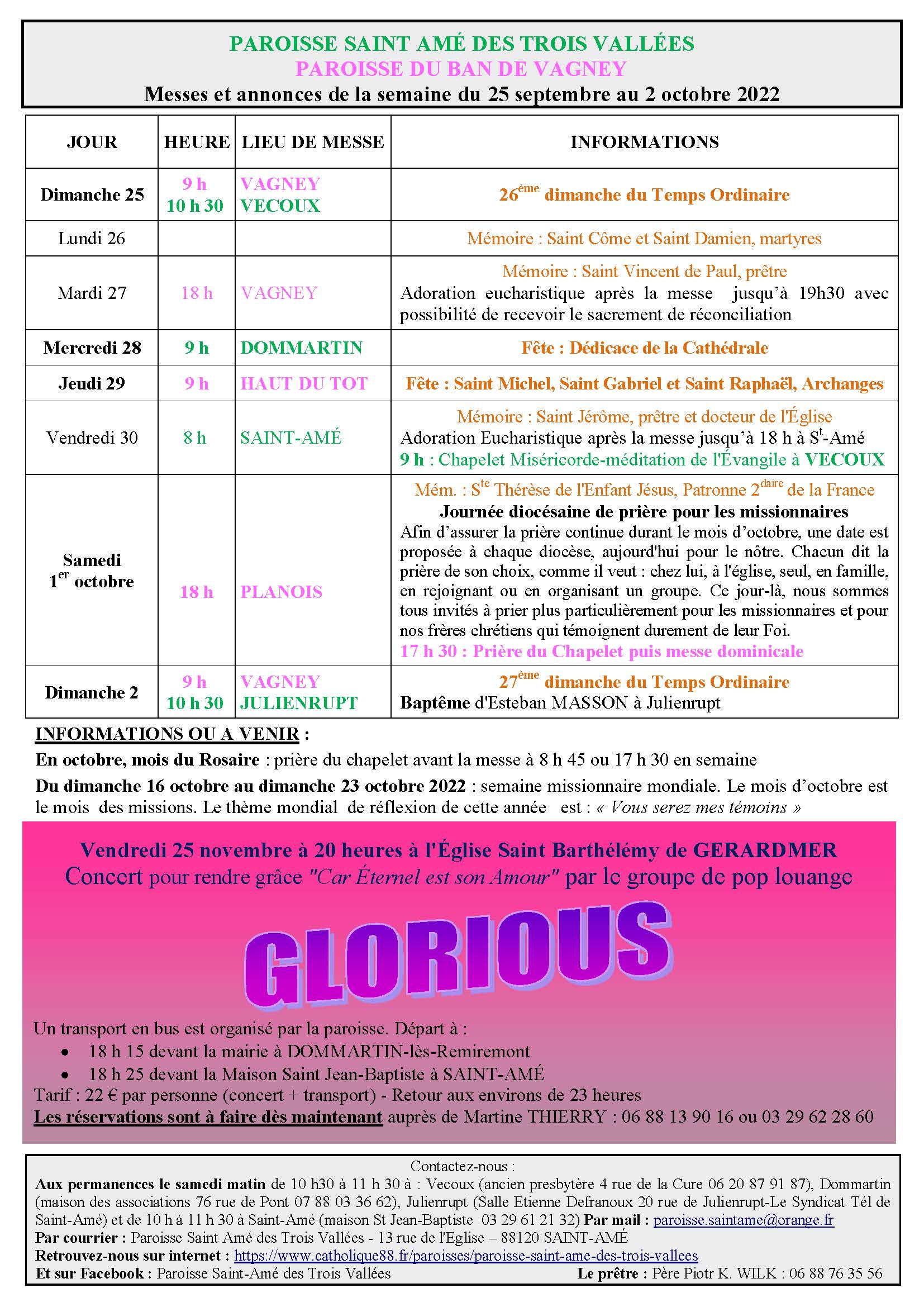 La Paroisse Saint-Amé des 3 vallées regroupe les secteurs de Saint-Amé, Cleurie, Julienrupt, La Forge, le Syndicat, Vecoux et Dommartin-les-Remiremont. Elle est née le jour de la Pentecôte 2000.