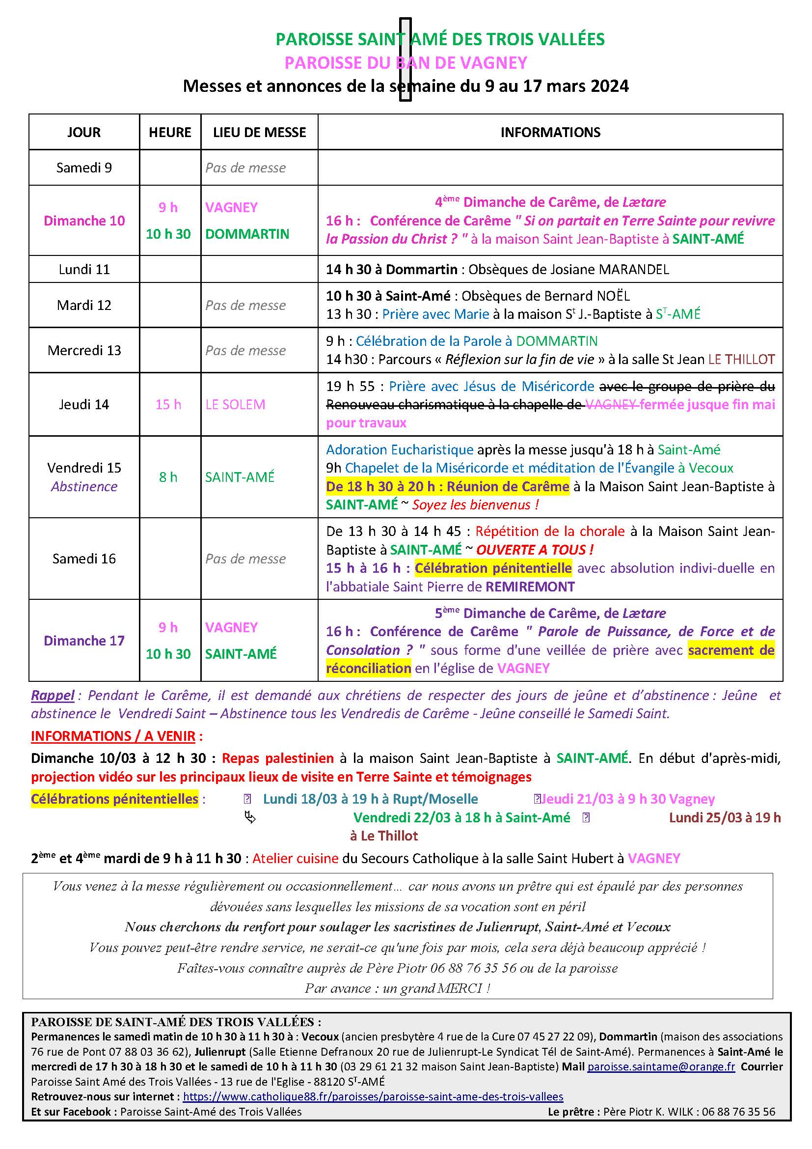 PLANNING DES MESSES ET EVENEMENTS SAINT AME DES TROS VALLEEES