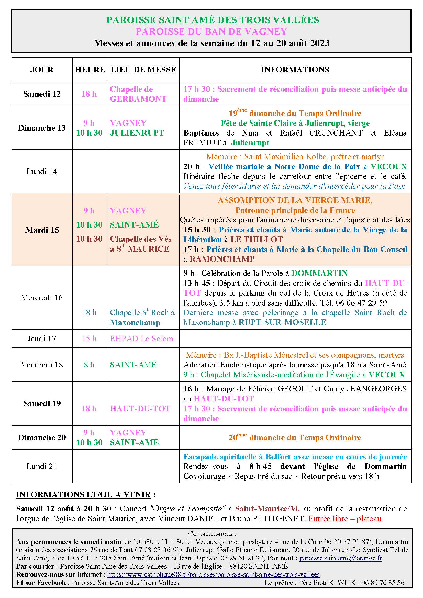 - Saint-Amé : de 10 h à 11 h 30