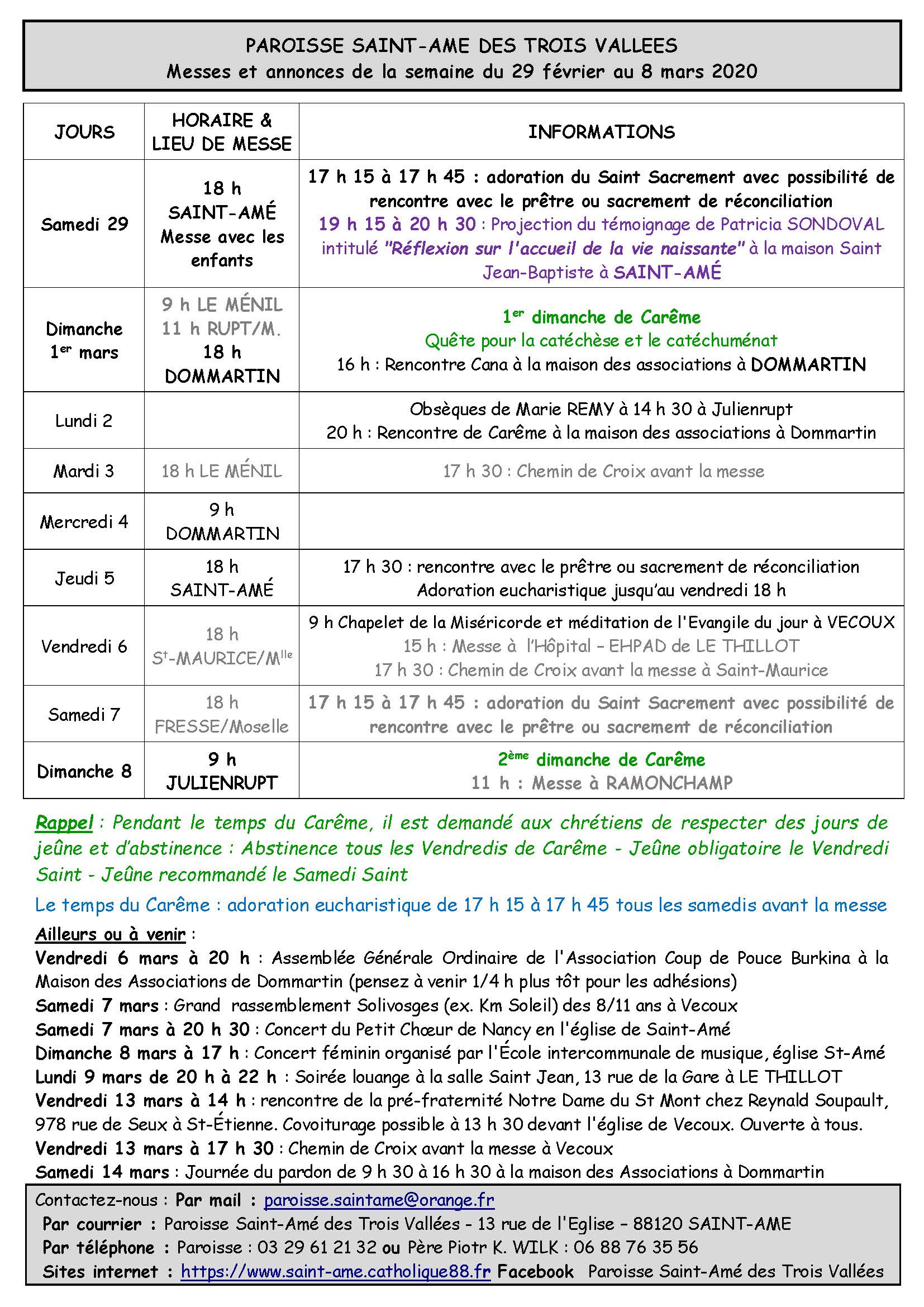 - Saint-Amé : de 10 h à 11 h 30