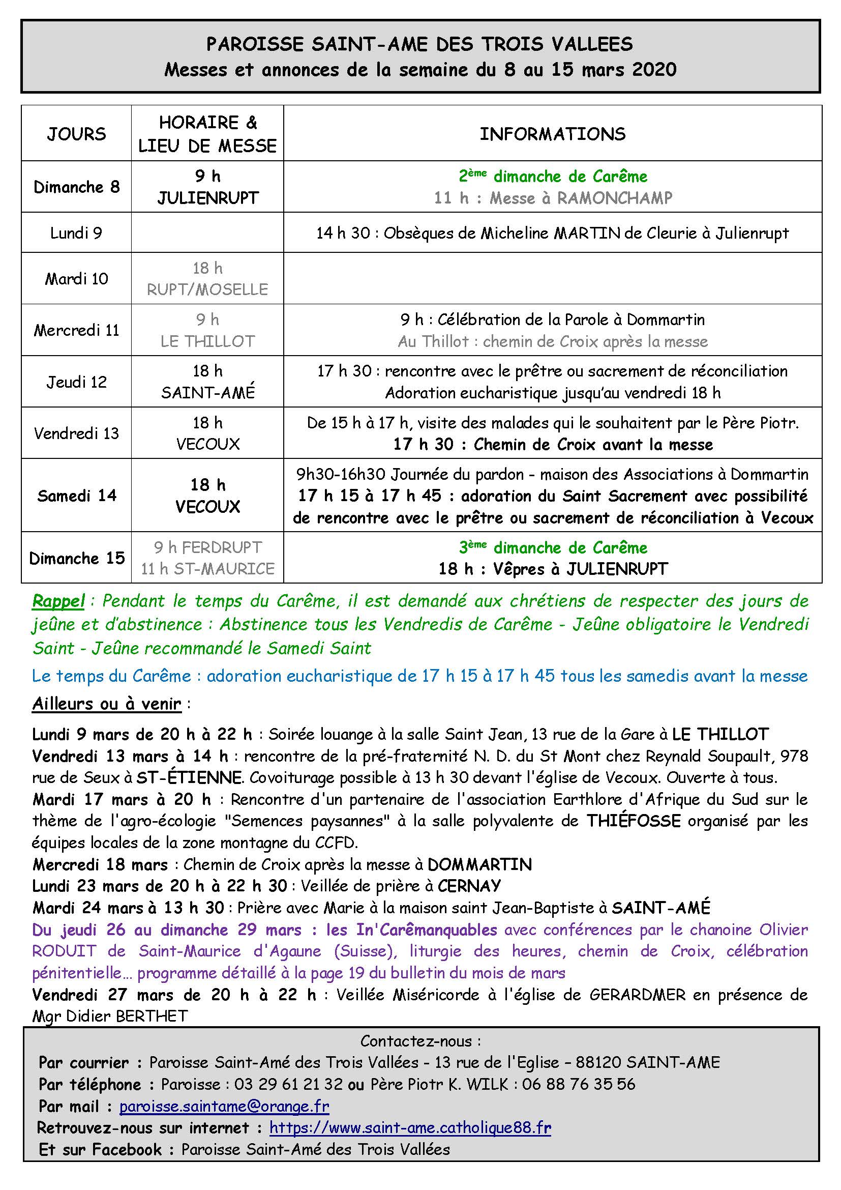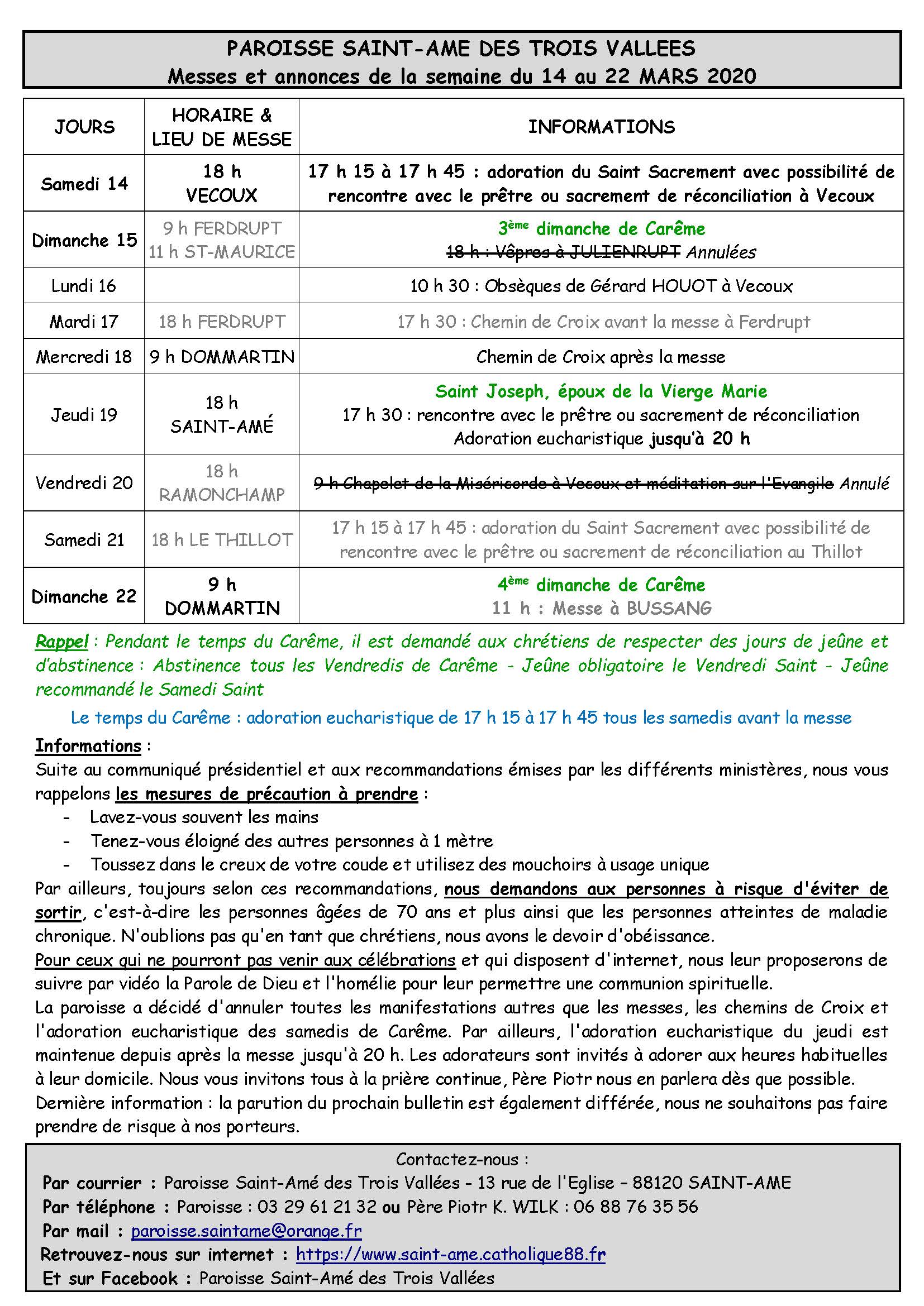 SUSPENSION DES MESSES DOMINICALES 14 MARS 2020