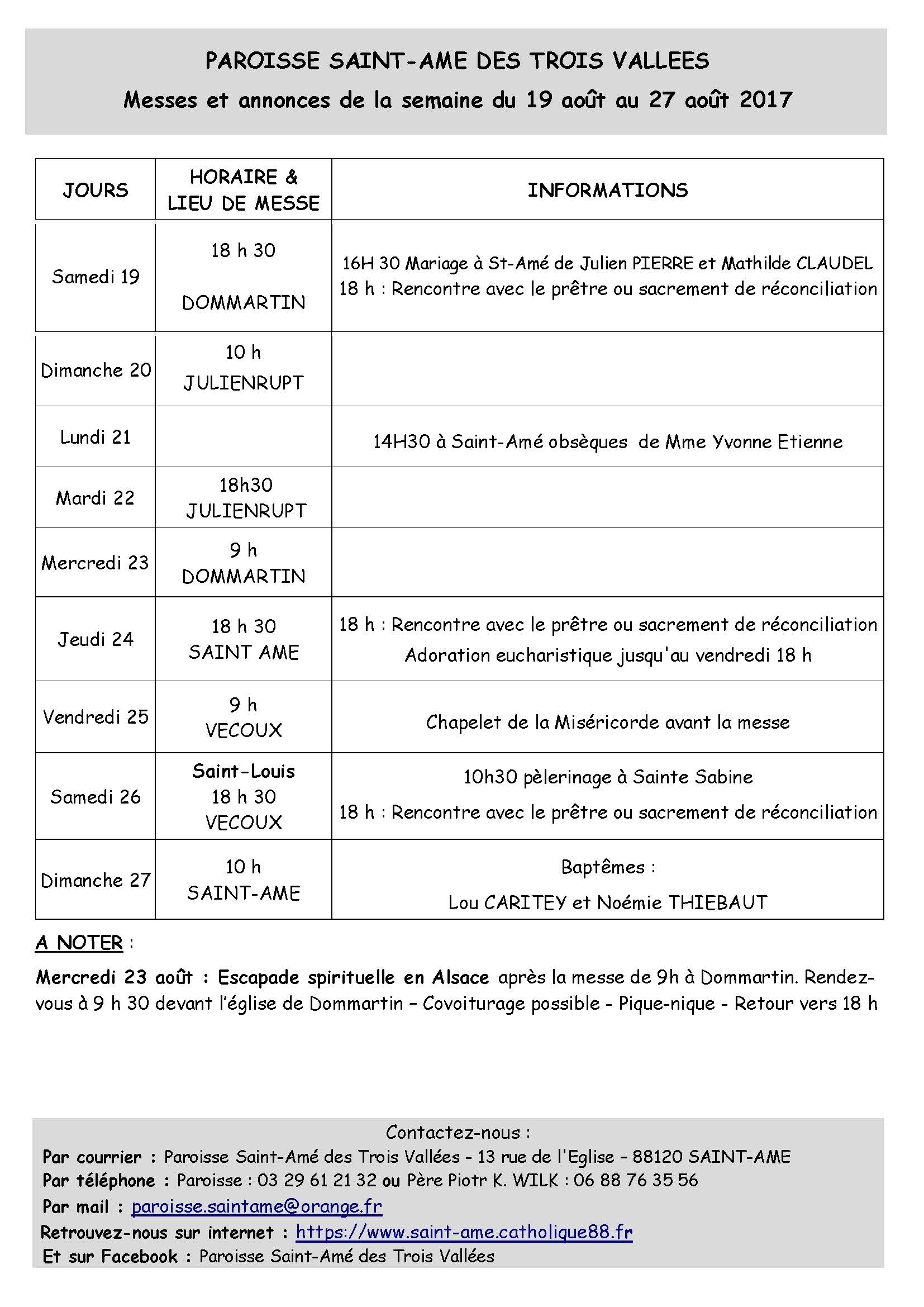 La Paroisse Saint-Amé des 3 vallées regroupe les secteurs de Saint-Amé, Cleurie, Julienrupt, La Forge, le Syndicat, Vecoux et Dommartin-les-Remiremont. Elle est née le jour de la Pentecôte 2000.