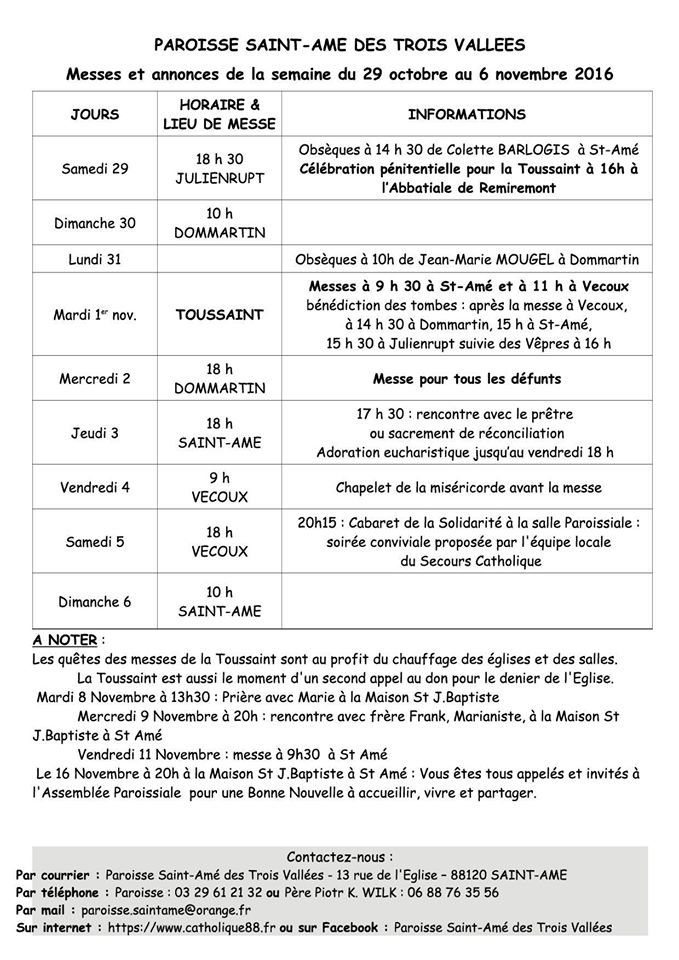 Annonces semaine 43 du 23 au 30 octobre 2016