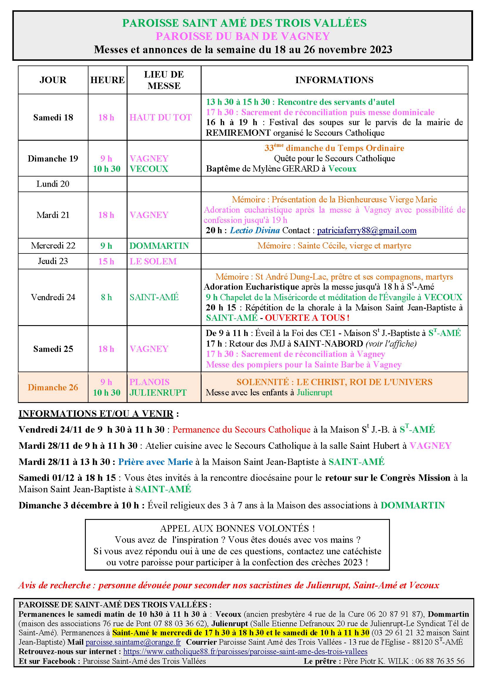 La Paroisse Saint-Amé des 3 vallées regroupe les secteurs de Saint-Amé, Cleurie, Julienrupt, La Forge, le Syndicat, Vecoux et Dommartin-les-Remiremont. Elle est née le jour de la Pentecôte 2000.