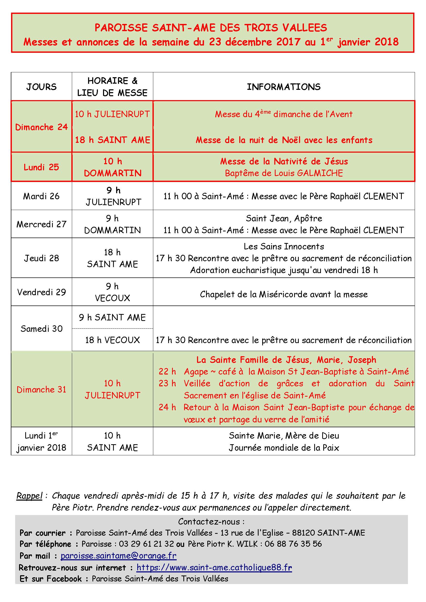 - Samedi 16 décembre à Saint-Amé à 19 h