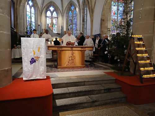 Puis, en procession, un représentant (ou une représentante) de chaque village est venu déposer une bougie sur un présentoir posé à l'entrée du choeur.