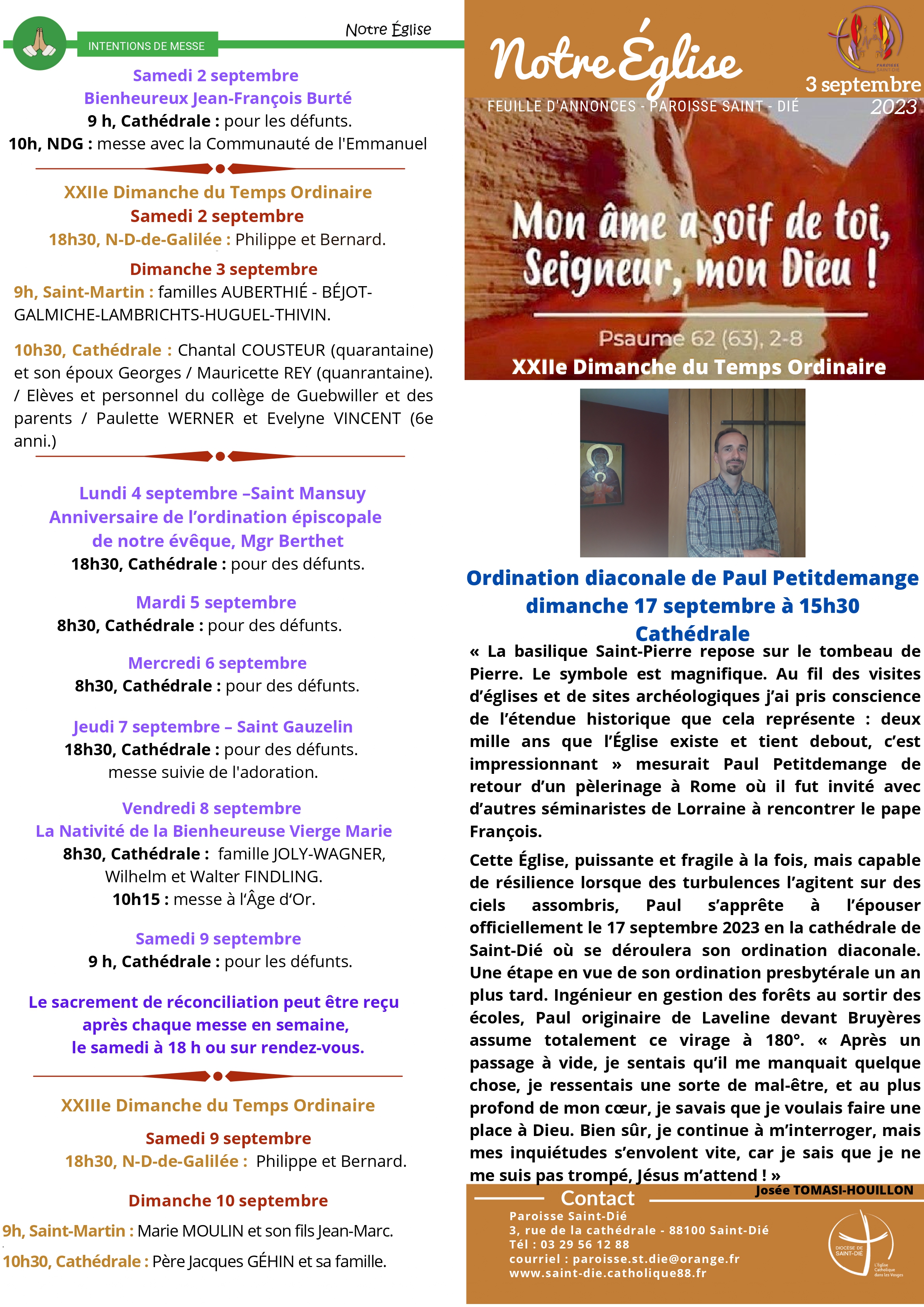 Pour télécharger la feuille d'annonces : Dimanche 17 septembre