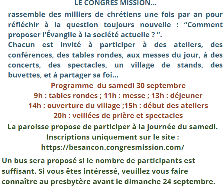 Prochaine rencontre : Jeudi 14 septembre à 14 h 30, maison Charles-de-Foucauld.
