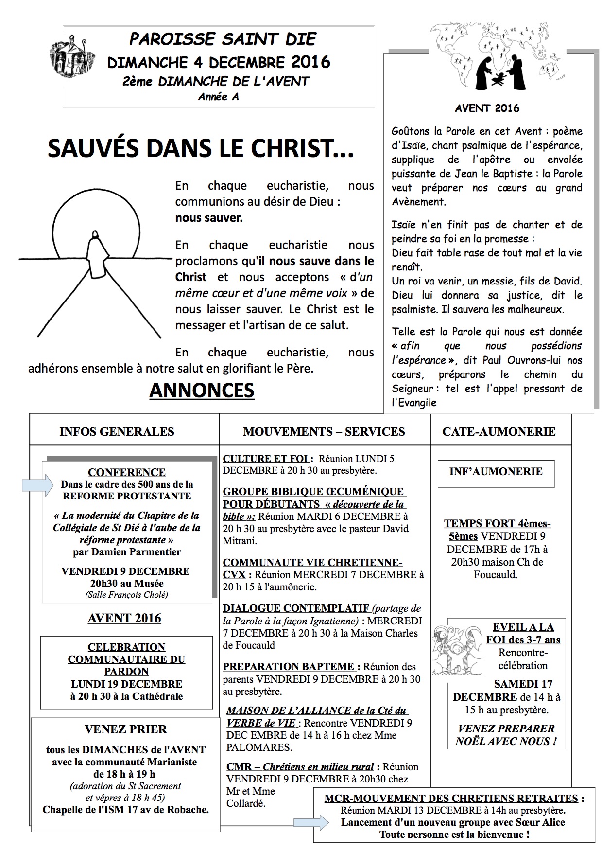 Notre paroisse porte le même nom que le diocèse auquel elle est rattachée et couvre la ville entière de Saint-Dié-des-Vosges.