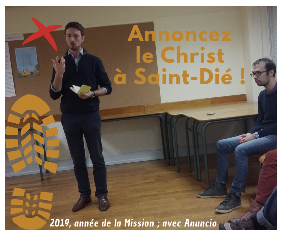 La paroisse Saint-Dié lancera dans les prochaines semaines une année de la mission. Des membres nancéiens du mouvement Anuncio ("faire connaître le Christ toujours et partout") ont rencontré les premiers missionnaires déodatiens pour témoigner de leur expérience. Il est envisagé l'organisation d'une journée de formation avant les grandes échéances de l'année. Elle sera fondée sur l'envoi des Apôtres, dans la foi au secours de l'Esprit Saint, "premier évangalisateur".