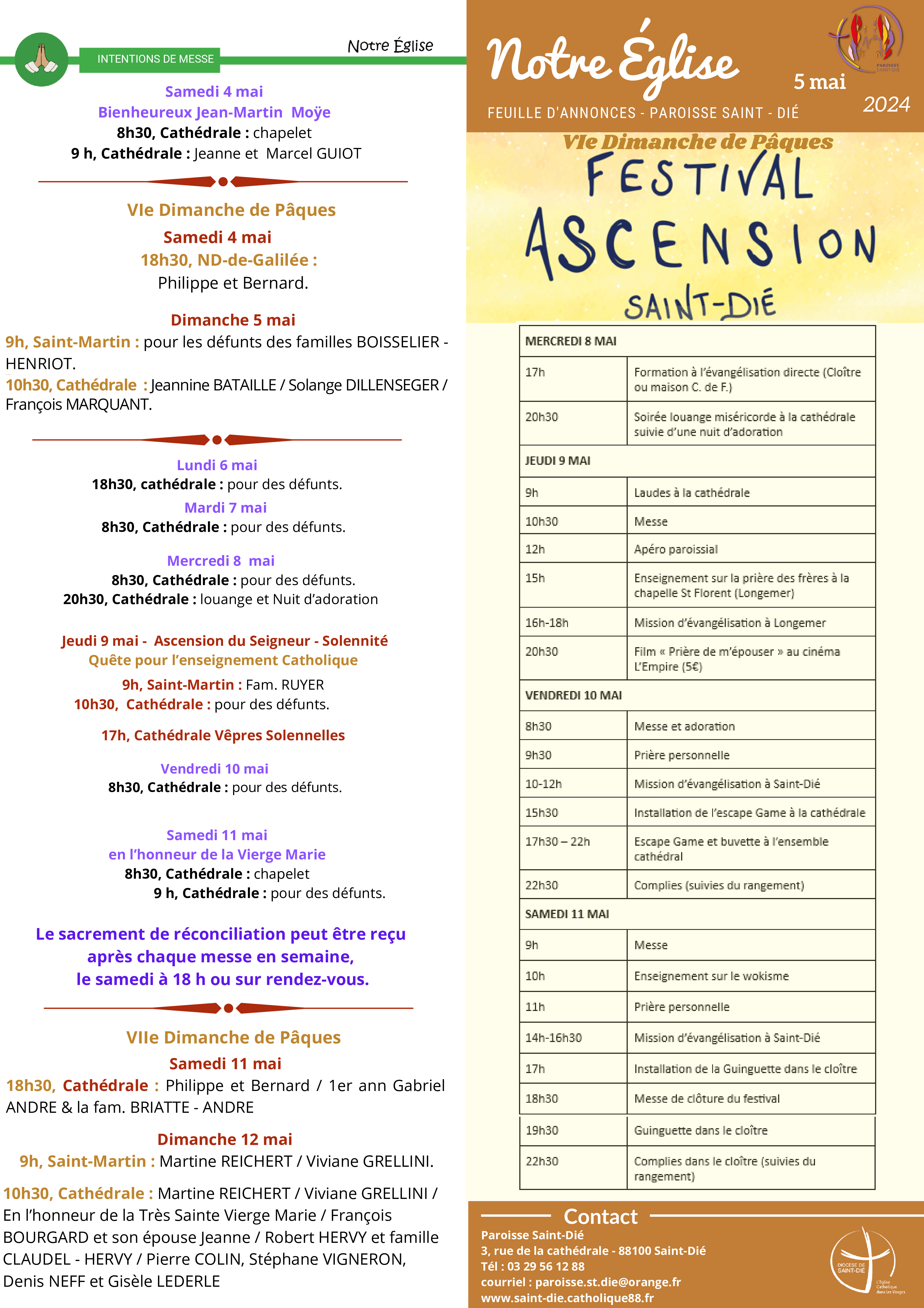 Vous pourrez visualiser la feuille d'annonces sur le site : saint-die.catholique88.fr/