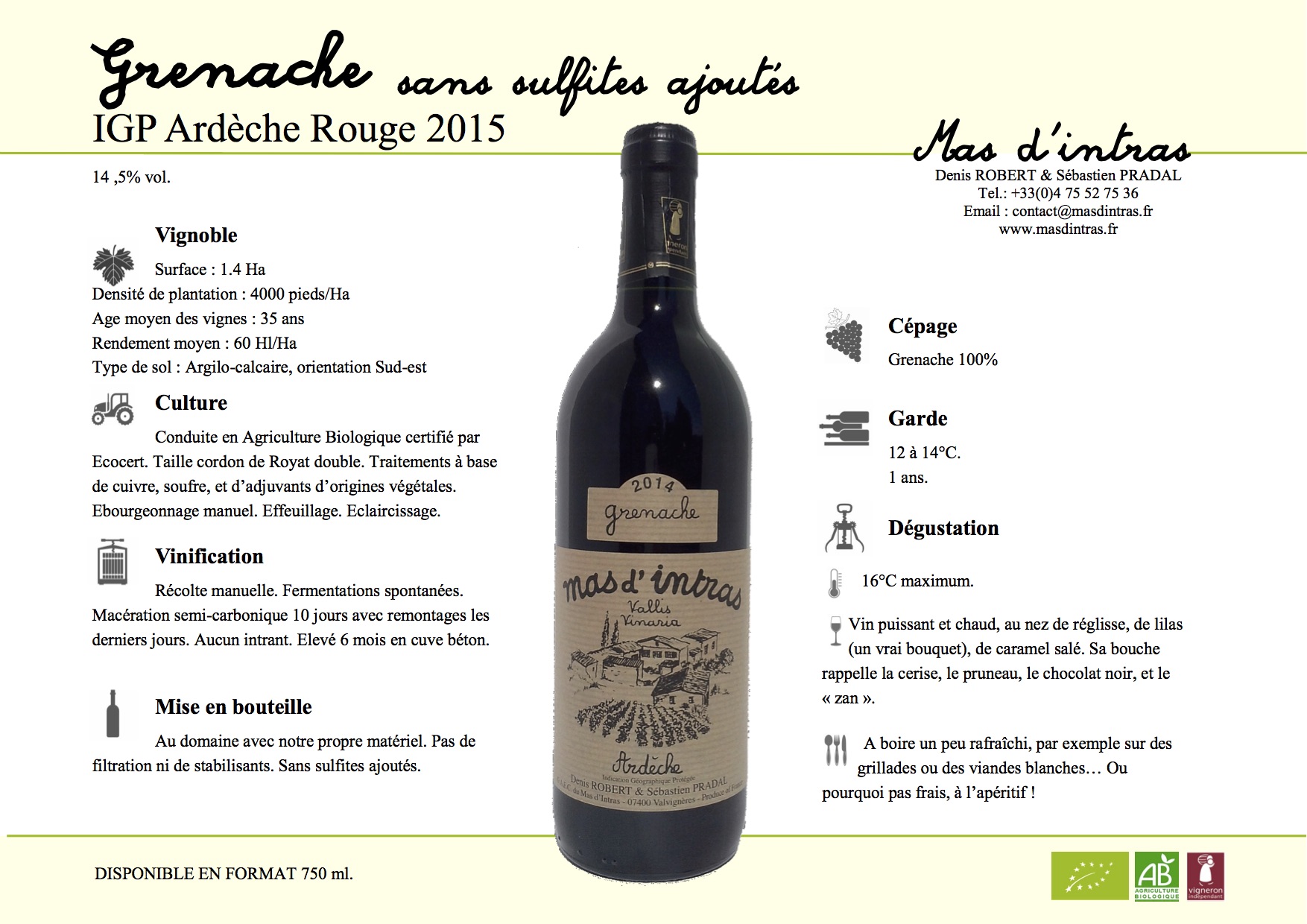 Nous vendons dans cette démarche du vin Mas d’Intras.