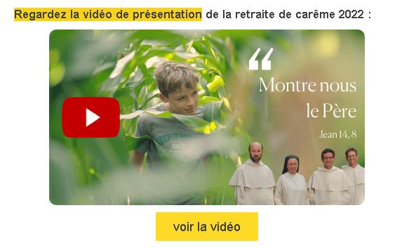 Suivez notre retraite de carême qui a pour thème : « Montre-nous le Père » (Jean 14, 8). Ensemble, avec des frères, des sœurs dominicains et des laïcs, éclairés par le témoignage de Jésus, guidés par son Esprit, redécouvrons notre Père, entrons dans l'expérience de la vie, jusqu'à la victoire du Christ sur la mort, jusqu'à Pâques, jusqu'à notre Pâque,notre Pâque.