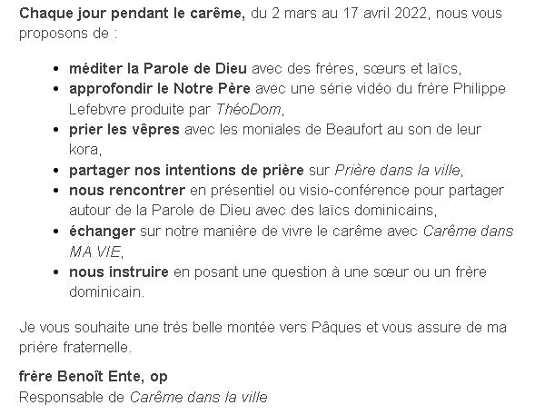 Je vous souhaite une très belle montée vers Pâques et vous assure de ma prière fraternelle.