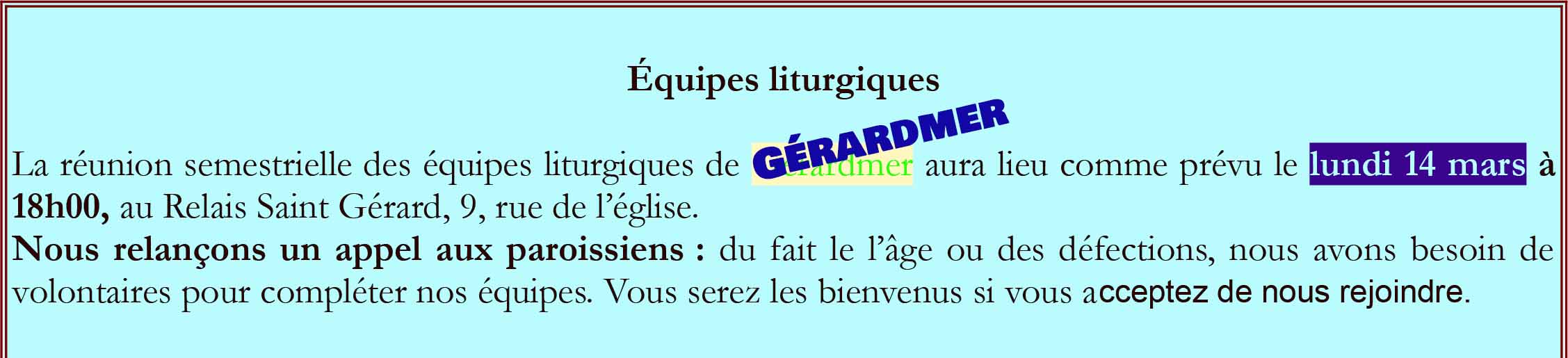 | Dimanche 18 janvier - 10:30 | Eglise Saint-Barthélémy de Gérardmer |