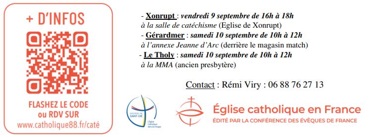 Installation des 3 prêtres par le vicaire générale Denis Beligné dimanche 25 septembre à 10h30 à l'Eglise de Géradmer suivie du verre de l'amitié.