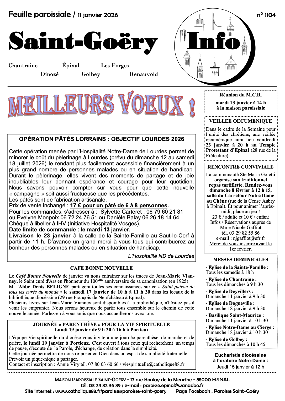 Notre Paroisse correspond à l’agglomération d’Epinal et comprend 6 communes :
