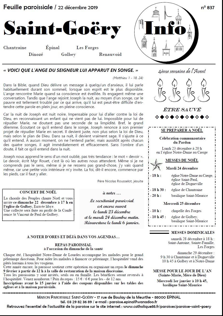 Notre Paroisse correspond à l’agglomération d’Epinal et comprend 6 communes :