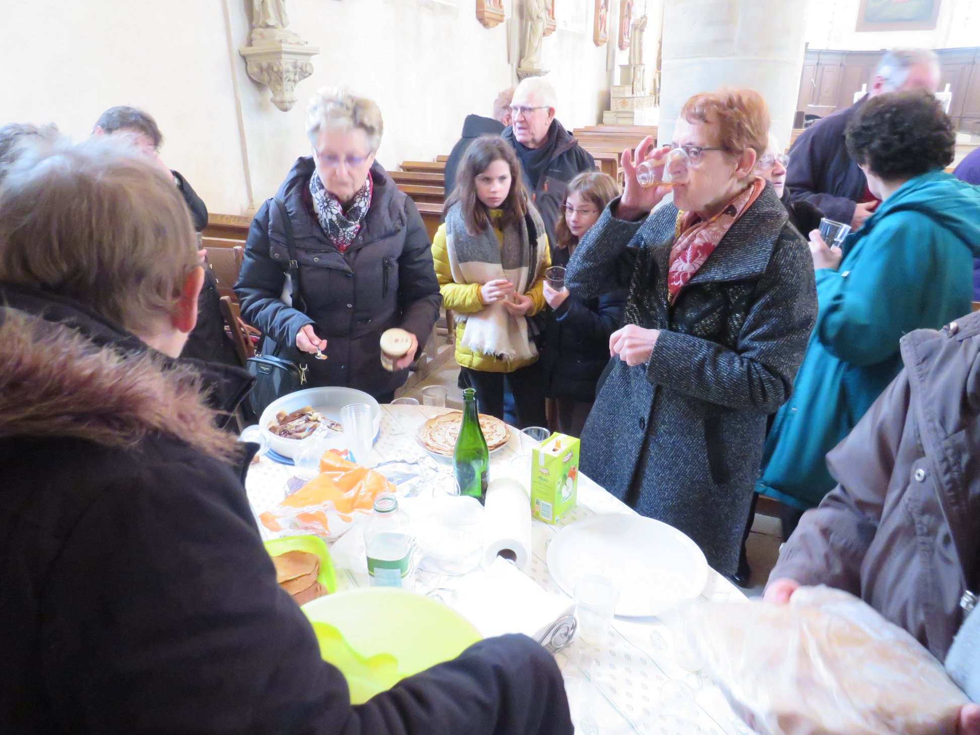 Cette célébration a été suivie par le partage fort convivial des crêpes confectionnées par les membres de la chorale que nous remercions chaleureusement pour leur implication en tous domaines et pour que vive notre Communauté Paroissiale !