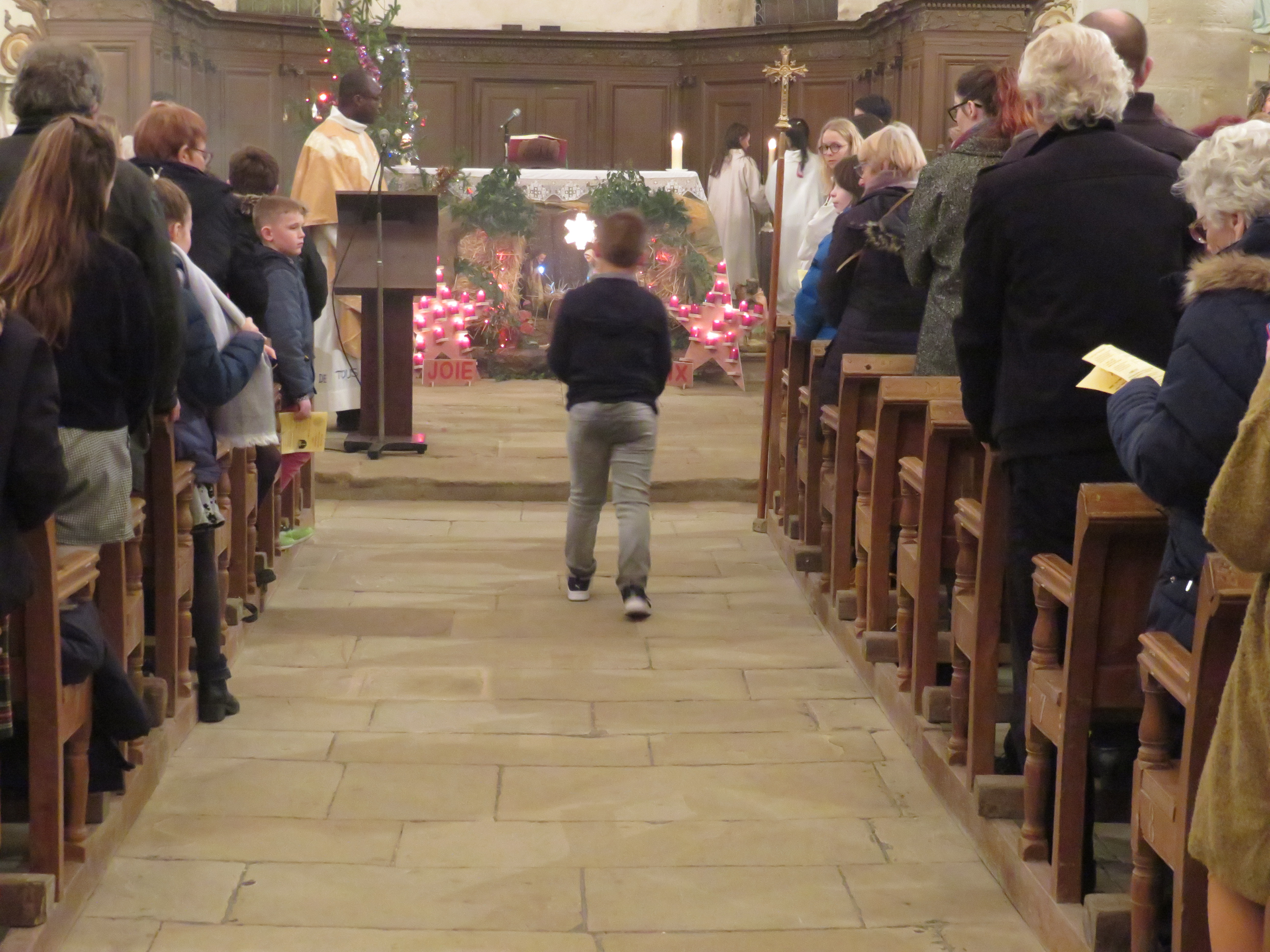 Après la bénédiction des cierges sous le porche, les fidèles se sont laissés porter par les chants de la chorale et les paroles de Mathias... "Nous, baptisés, sommes envoyés, missionnés pour témoigner du Christ et de Son Evangile... Nous, baptisés sommes nous conscients que lorsque nous venons communier, nous "mangeons" le Christ qui, désormais en nous, va nous accompagner dans notre quotidien?..." Et d'appuyer ces paroles fortes par le chant "Peuple de lumière" repris en choeur par toute l'Assemblée !