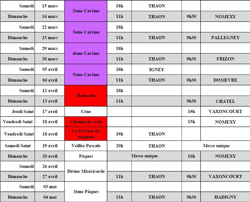 Agnès Remy est responsable de l’éveil à la foi et du catéchisme pour les CP et CE1, Nicole Hutter et Martine Poirot pour les CE2, CM1, CM2. L’aumônerie scolaire est commune aux collèges de Châtel, Charmes et Thaon.