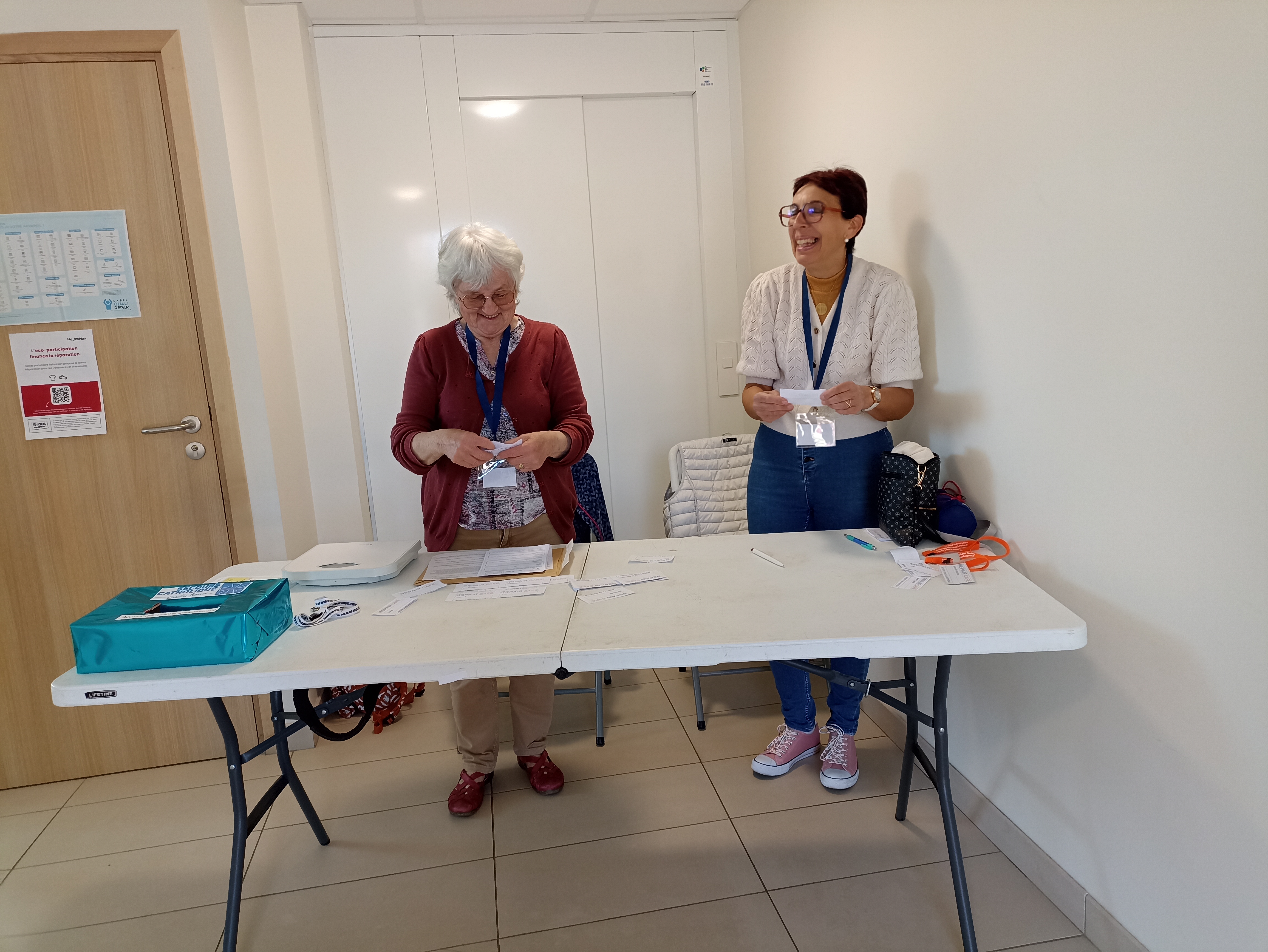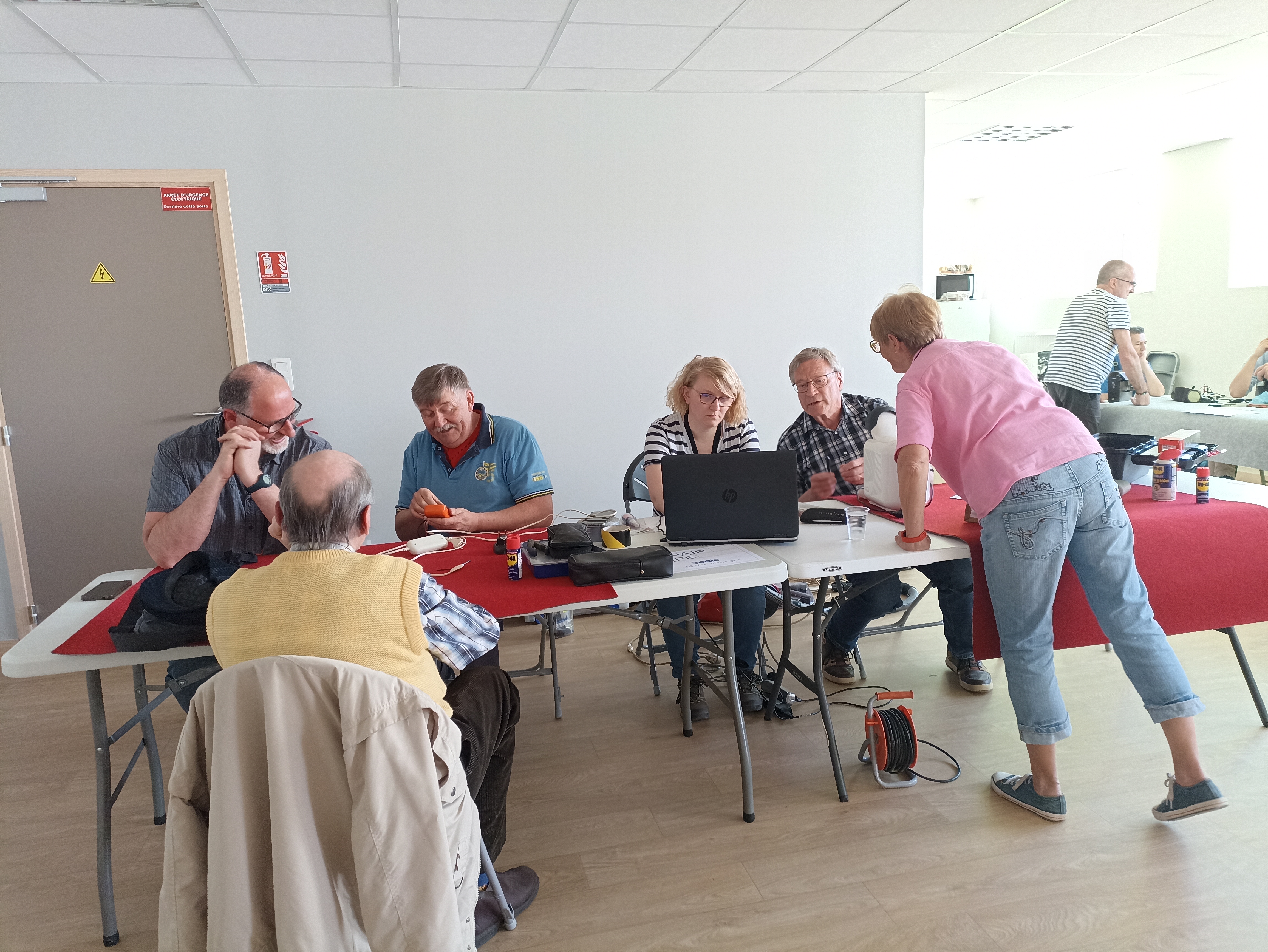 Les visiteurs sont accueillis : ils remplissent une fiche avec quelques indications notamment le problème constét sur l'appareil qu'ils apportent. L'appareil est ensuite pesé et les personnes sont dirigées vers les réparateurs bénévoles.