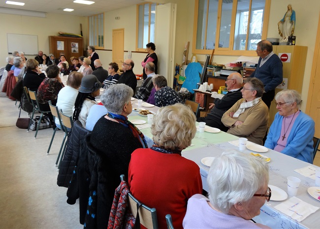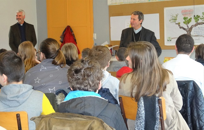 Après le repas pris à la salle paroissiale voisine de l’église, Mgr Berthet s’est adressé aux enfants, adolescents et jeunes adultes présents pour leur parler de l’appel de Dieu, pour leur rappeler qu’eux aussi sont concernés par cet appel, qu’ils doivent être attentifs à cet appel, afin de décider s’ils désirent y répondre.