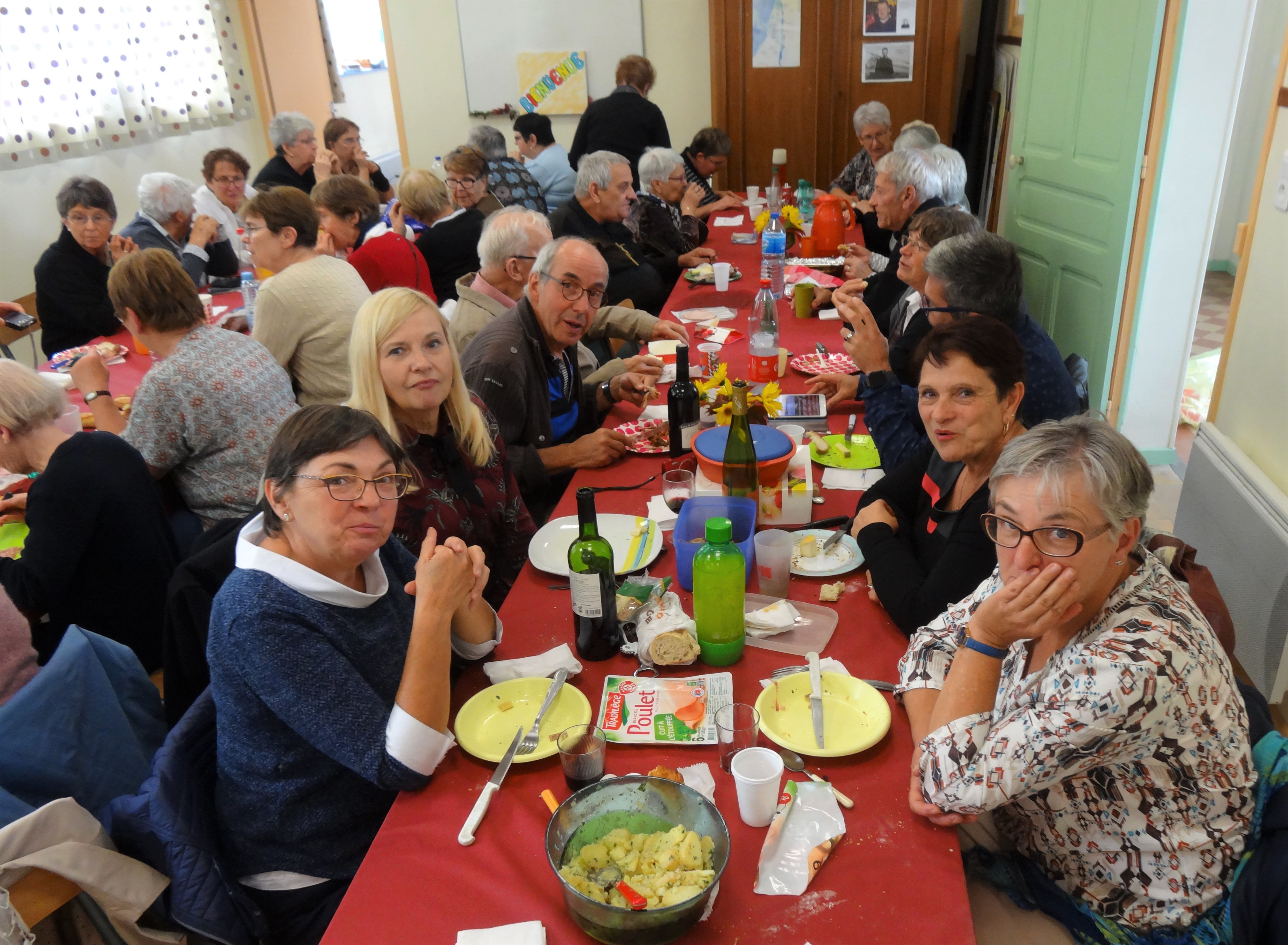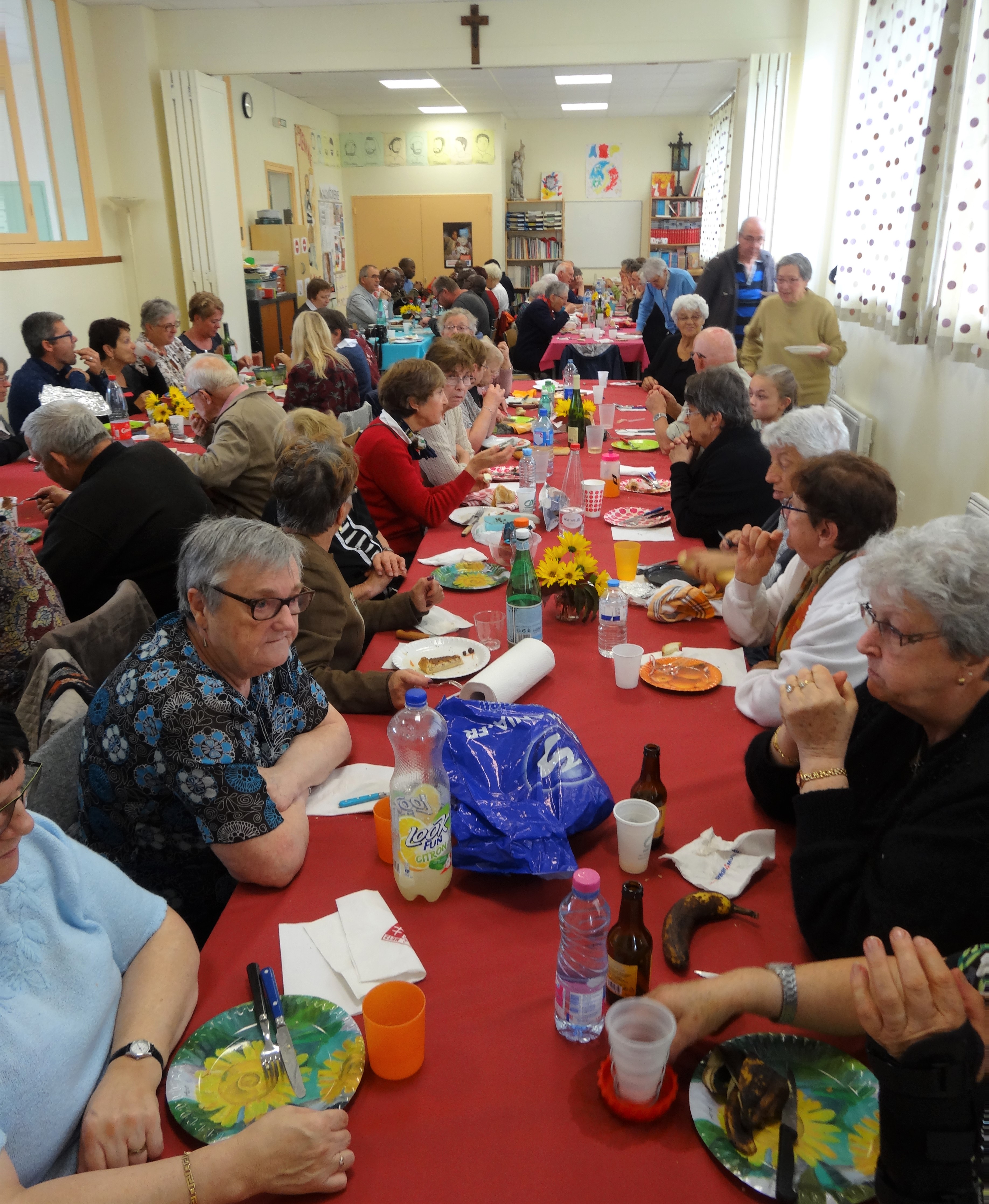 Après la messe, le verre de l’amitié était offert par la paroisse, puis, ceux qui le désiraient ont participé au repas partagé dans la salle paroissiale Jean-Rodhain qui n’avait jamais vu autant de monde.
