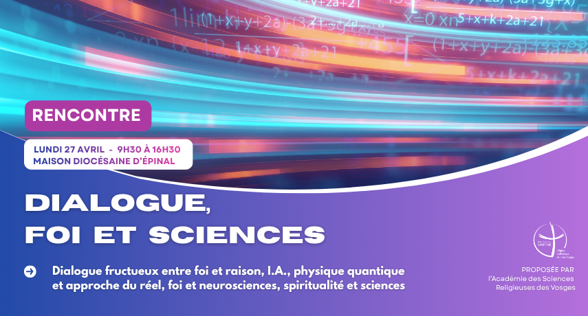 L'Académie des sciences religieuses des Vosges (ASRV) propose un temps de rencontre et d'échanges avec le père Thierry Magnin le lundi 27 avril 2026, de 9h30 à 16h30 à la Maison diocésaine d'Épinal, autour du thème « Dialogue, Foi et sciences ».
