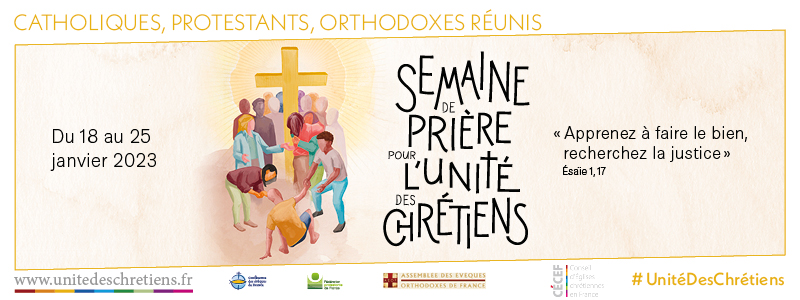 Chaque année, une « Semaine de prière pour l’unité chrétienne » a lieu à travers la planète. Cette semaine de prière œcuménique a lieu du 18 au 25 janvier 2023, avec pour thème : « Apprenez à faire le bien, recherchez la justice » (Ésaïe 1, 17).