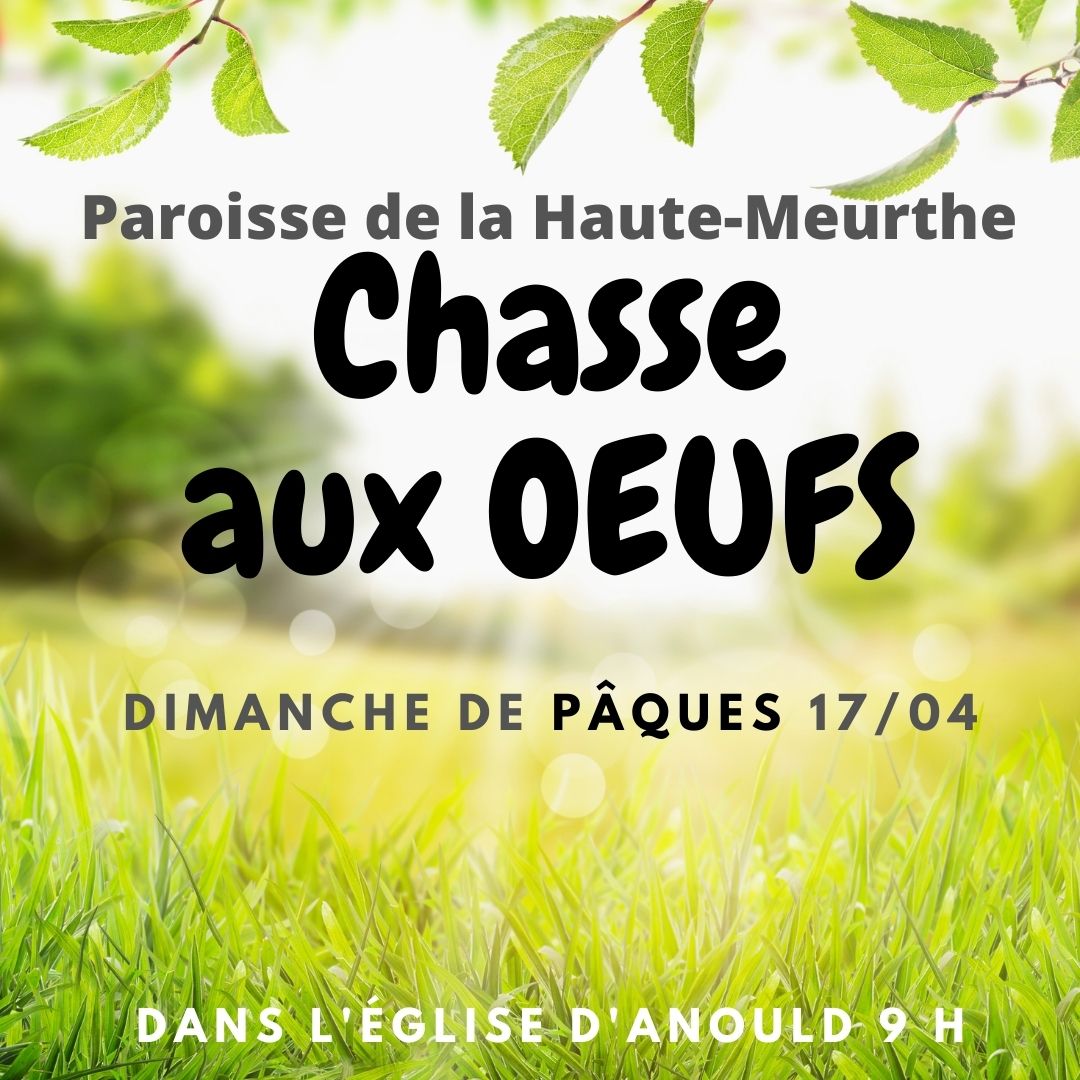 La paroisse de la Haute-Meurthe propose une chasse aux oeufs dans l'église d'Anould (entre Saint-Dié et Fraize) le dimanche 17 avril dès 9h autour des images de la Résurrection : cierge, eau, cloches, croix, etc... La proposition est gratuite et ouverte à tous les enfants. Puis viendra la messe solennelle de Pâques à 10h avec trois baptêmes d'enfants.