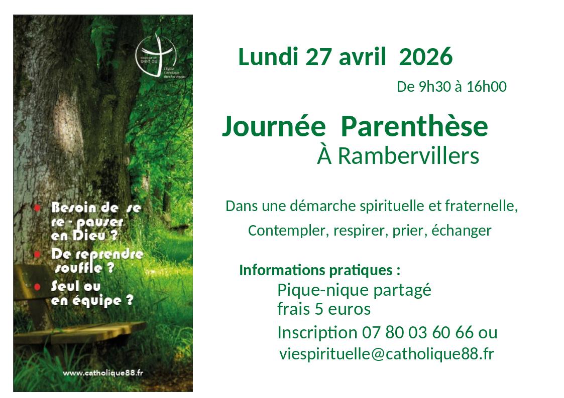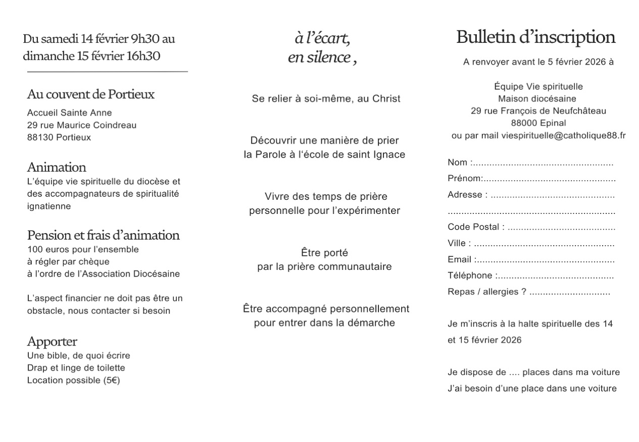 Inscription Annie Viry 07 80 03 60 66 ou viespirituelle@catholique88.fr